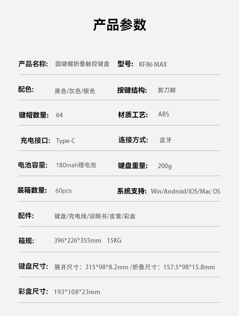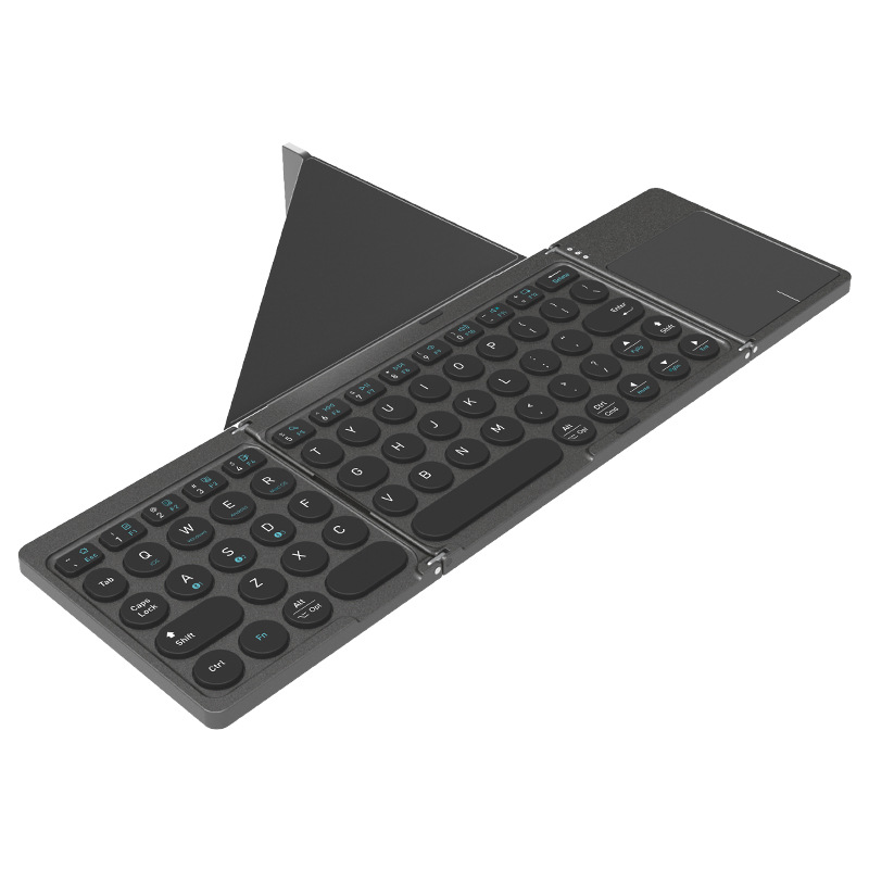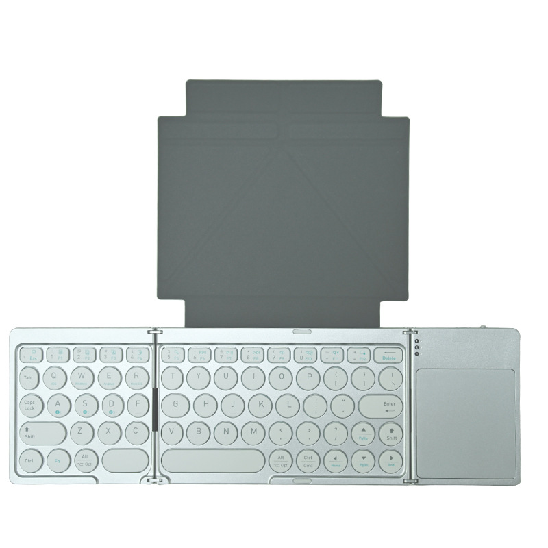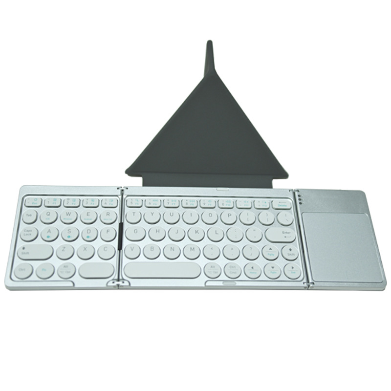 新款上市皮套式三折叠无线蓝牙键盘带触摸板圆键帽便携式折叠键盘