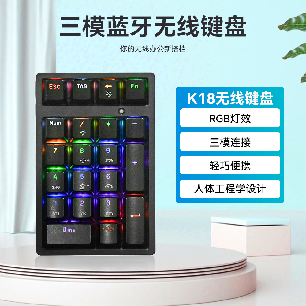K18三模数字蓝牙机械键盘财务会计收银电脑USB迷你外接数字小键盘