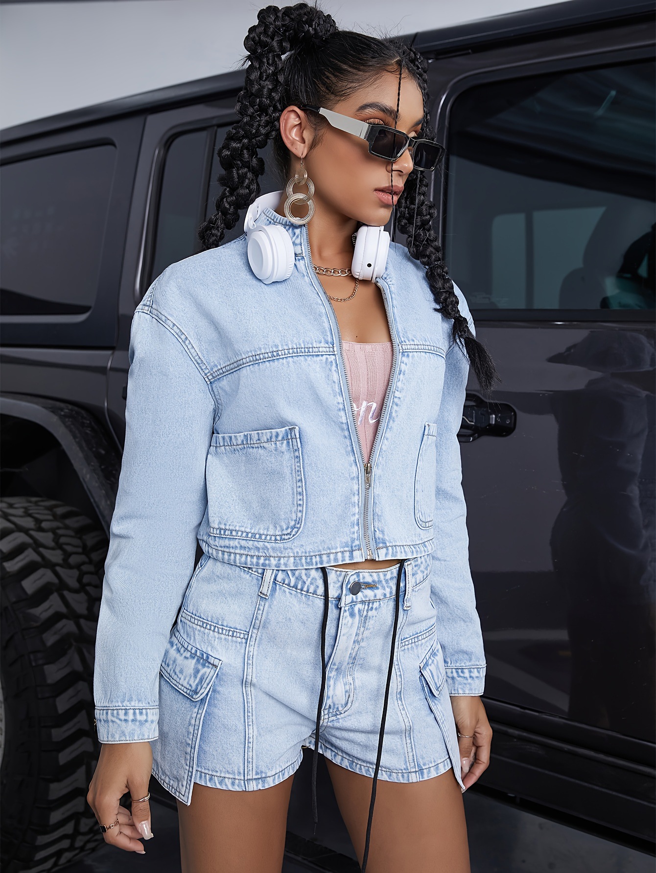 ポケット付きレディースデニムジャケットヨーロッパとアメリカのクロスボーダー