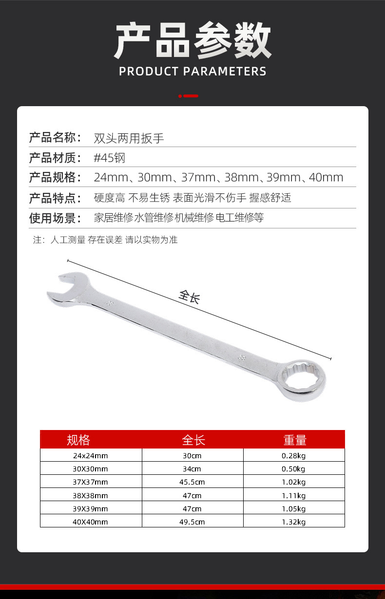 両用明るいスパナ梅レンチ開口スパナセット自動車修理工具大全修理専用二頭フォーク