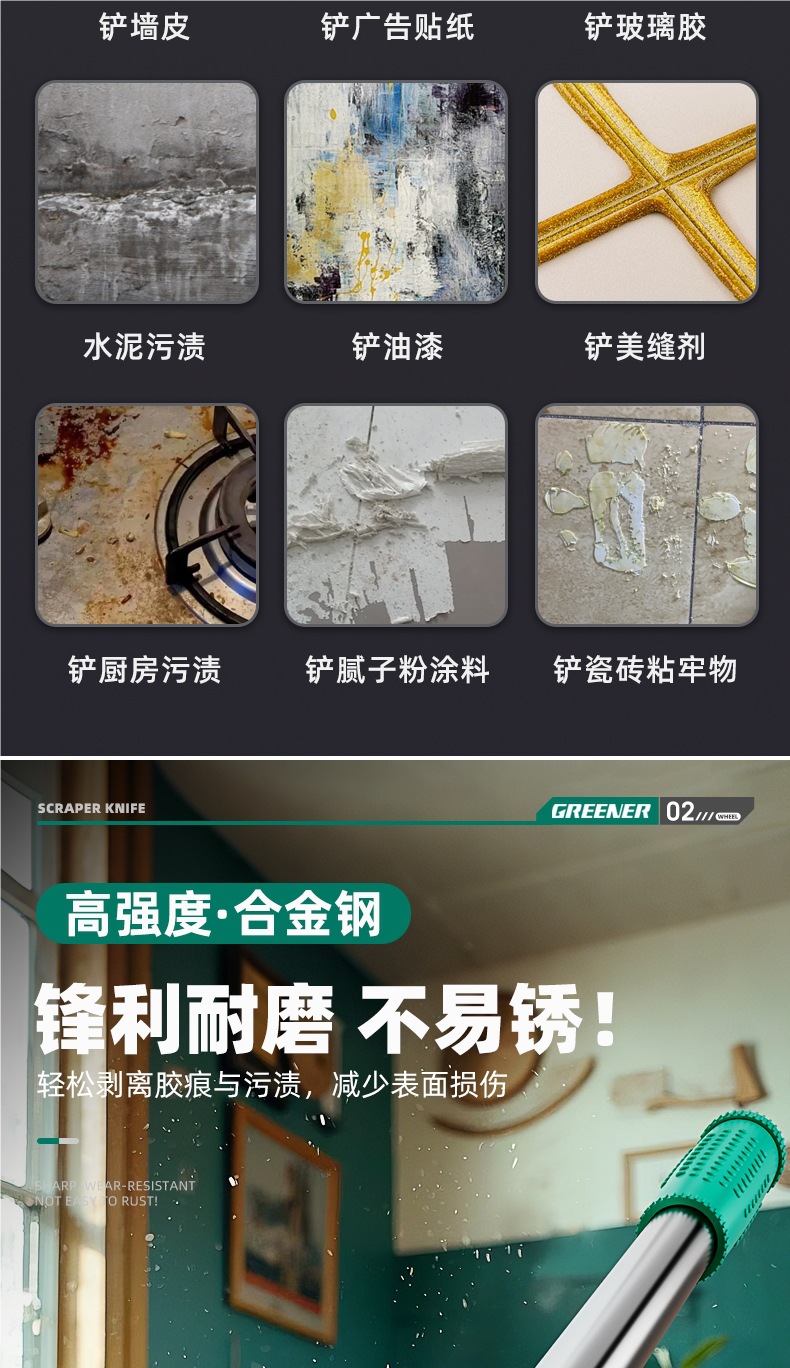 超硬スクレーパー、クリーニングナイフ、継ぎ目糊除去スクレーパー、スクレーパー、糊取りブレード、ガラス糊クリーニング