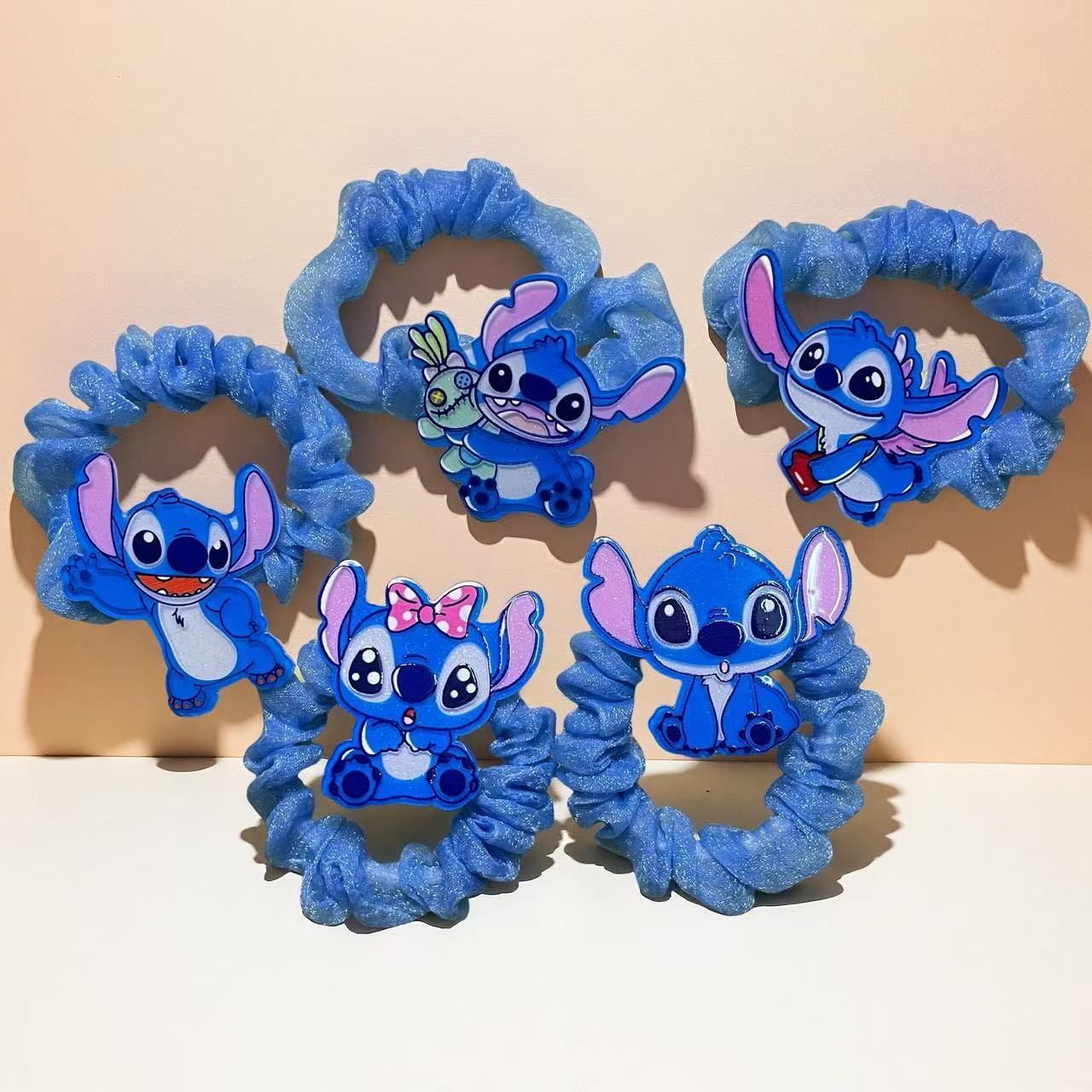 鴎美かわいいブルーピンクのスティッチの腸輪漫画の子供のアクセサリーの馬尾のひもの皮筋の女の子の髪飾り