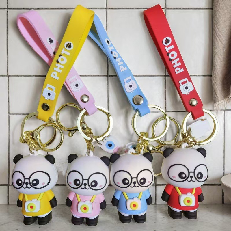 創意的なアニメのかわいいパンダの鍵は人形の精巧なカップルの自動車のキーチェーンのペンダントを掛けて飾ります。