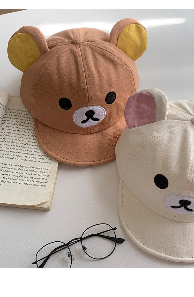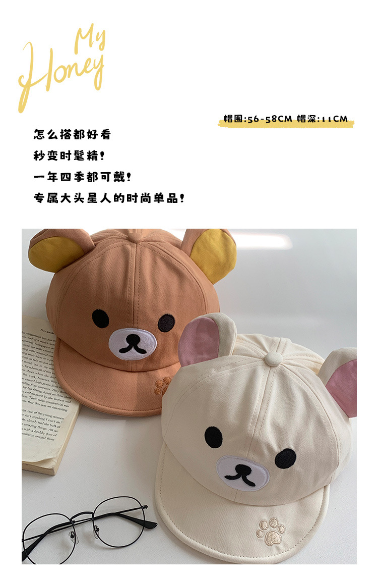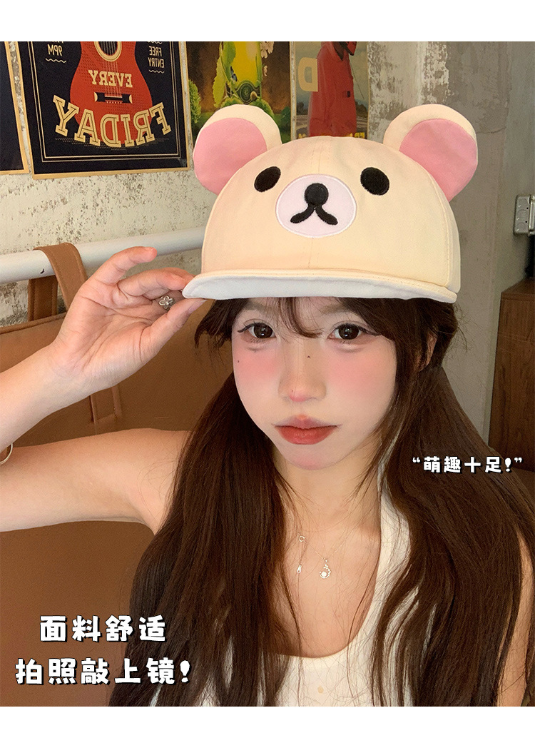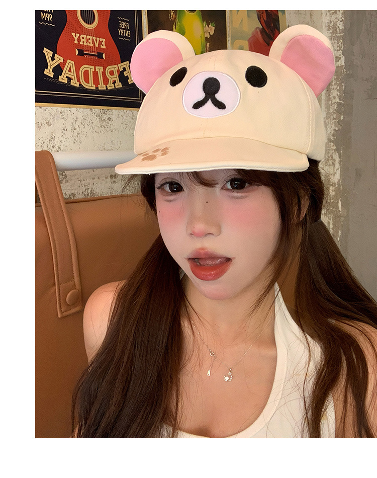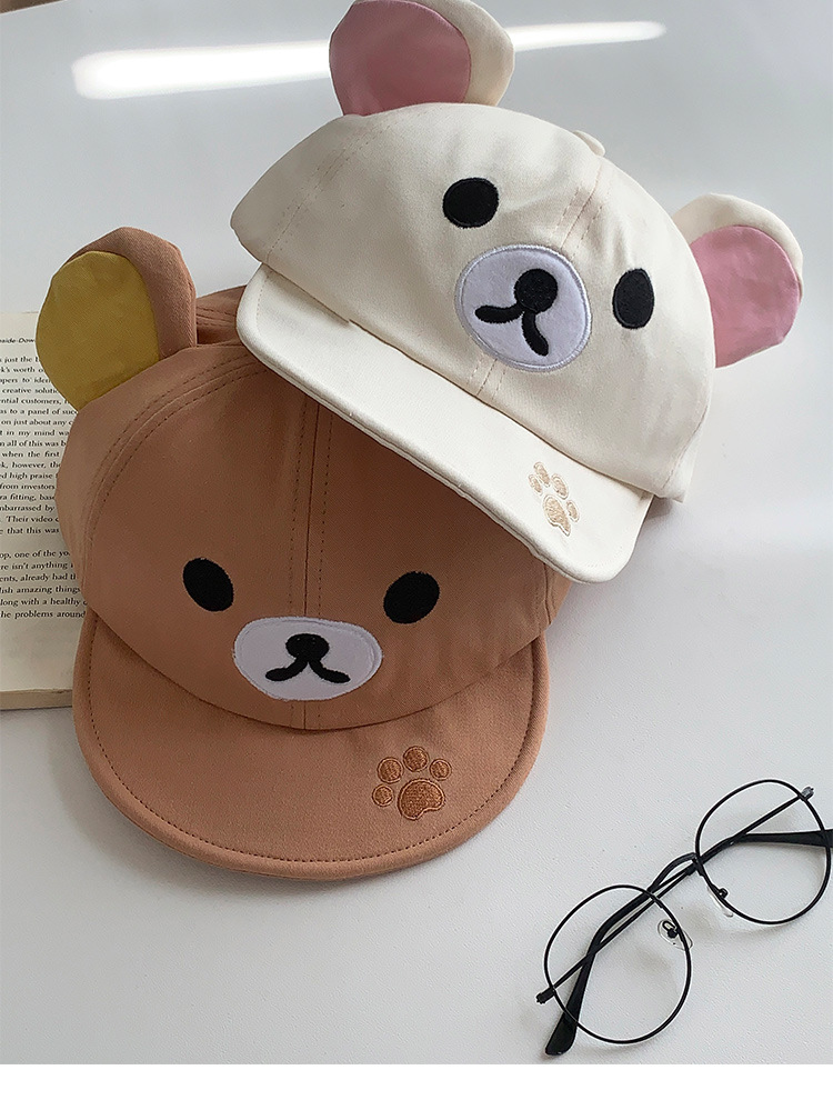 日本のかわいいクマリラックベアフリップアップひさしキャップ女性用春と夏の漫画サンシェード多用途野球帽トレンディ