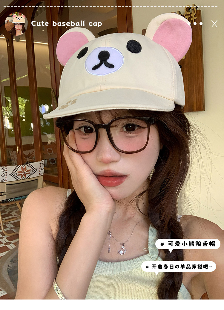 夏かわいいクマ刺繍つば付きキャップ女子学生旅行多用途顔見せ小帽子野球帽