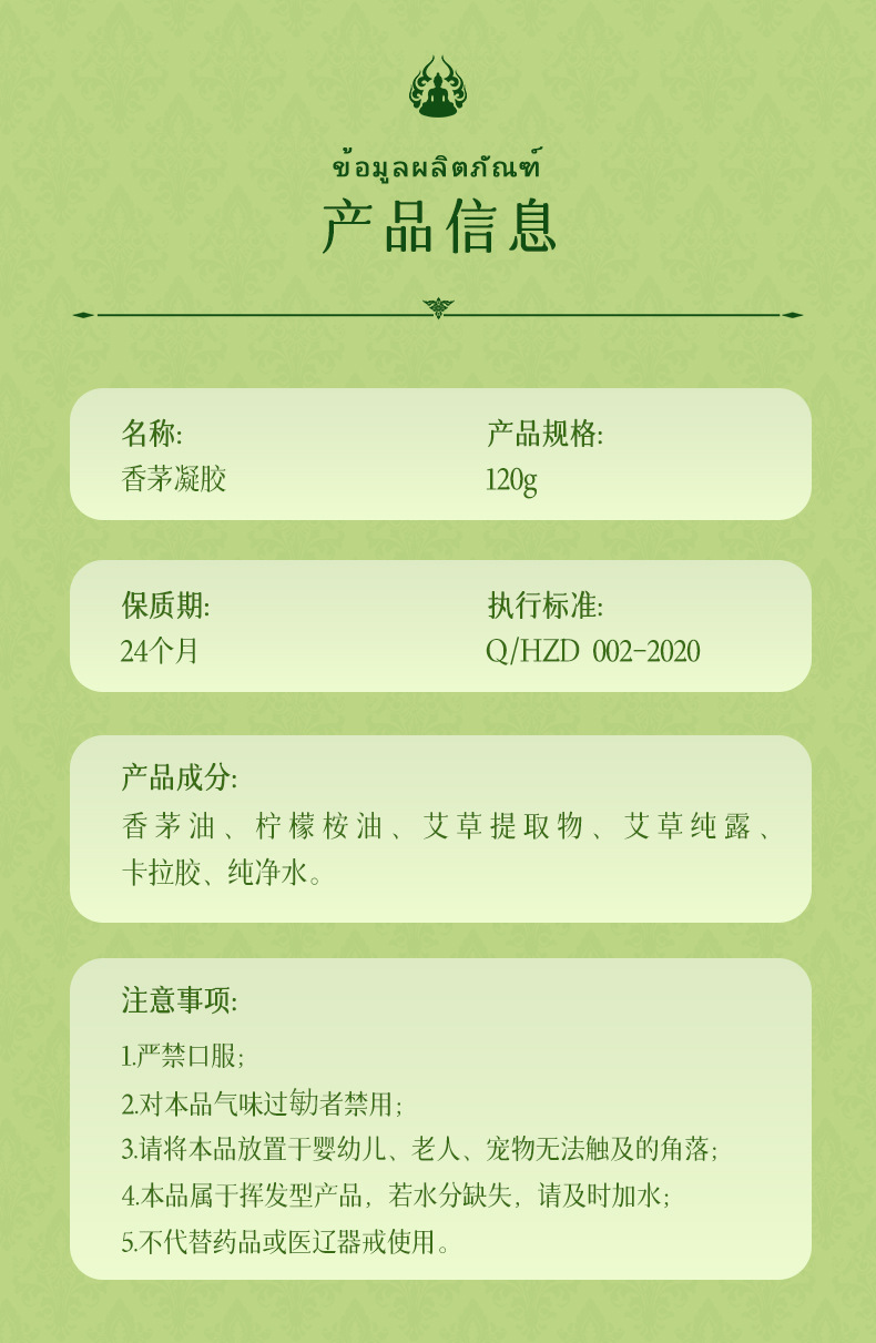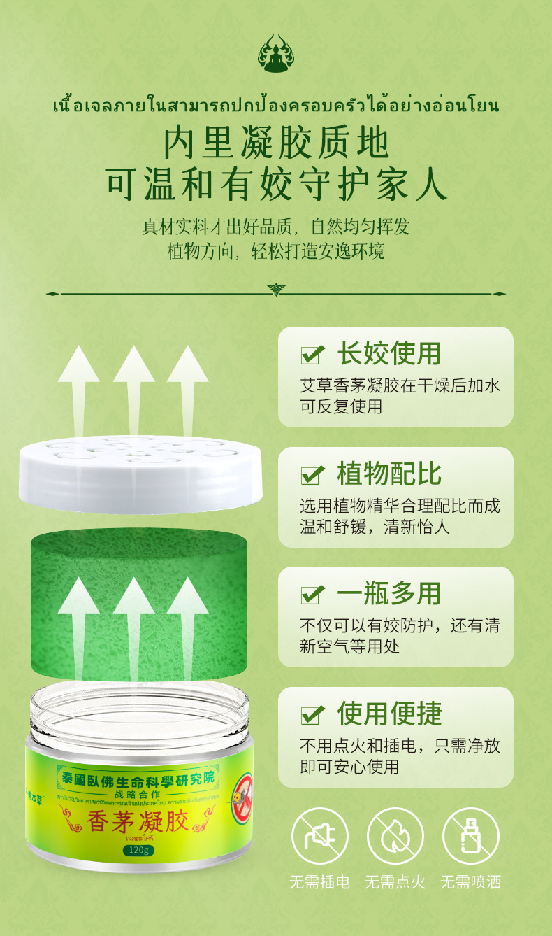 タイレモングラスジェル千仏ハーブレモングラスアロマセラピーレモングラス蚊よけトイレ水冷却スプレー工場卸売