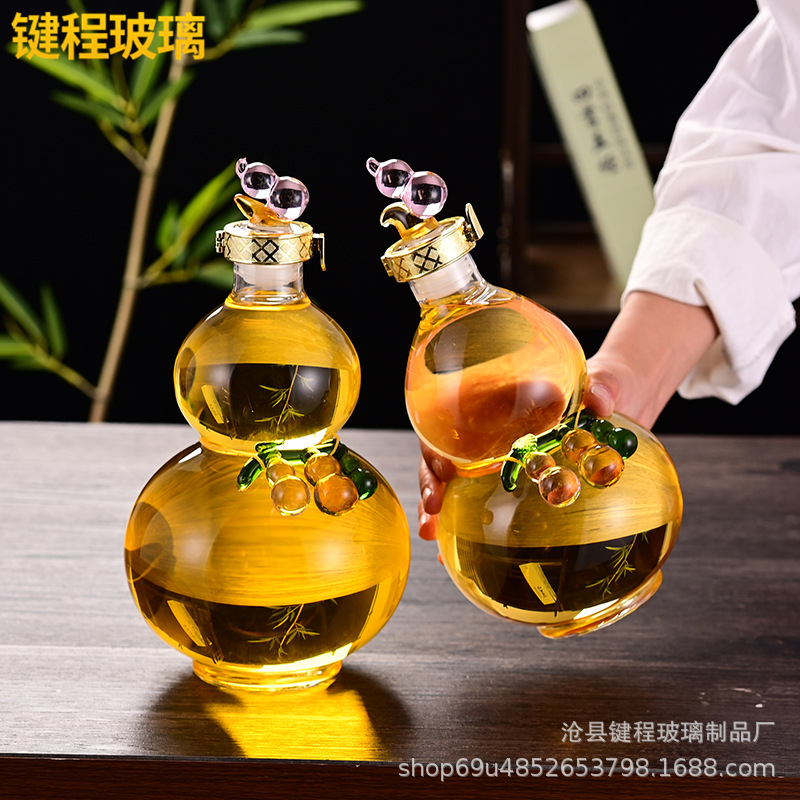在庫あり ひょうたん型酒瓶 高硼珪酸ガラス製 工芸酒瓶 クリエイティブなひょうたん型 大容量空酒瓶