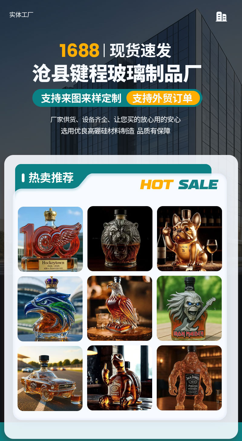 十二生肖頭牛の形は酒瓶の工芸ガラスの白酒瓶の中空頭の牛酒瓶の密封性が良いです。