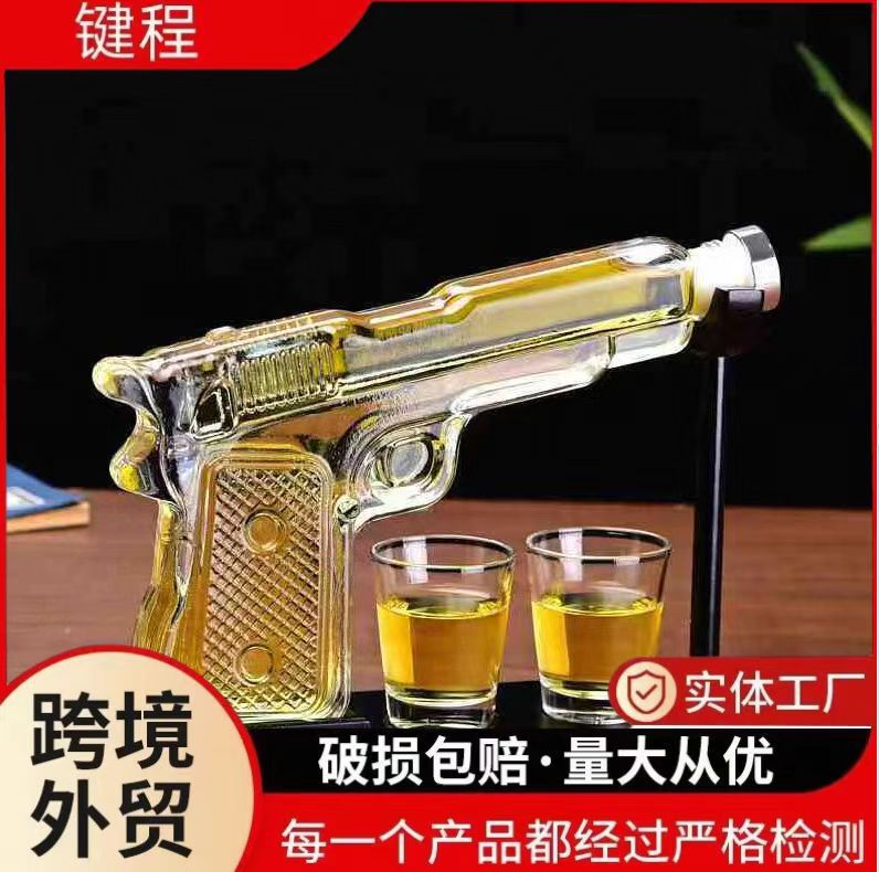 ガラスピストルデキャンタウイスキー分酒器創意ガラス銃型泡酒瓶工芸酒瓶セット