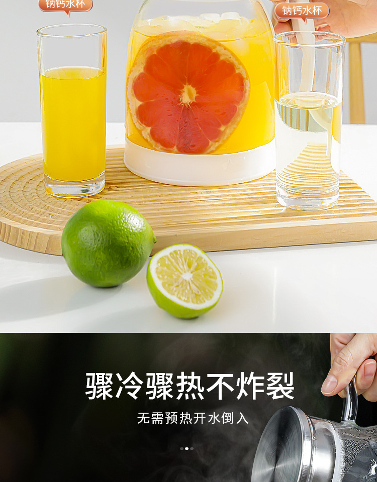 冷果汁壶玻璃水壶大容量凉水壶水壶家用耐高温泡茶壶套装储水防爆
