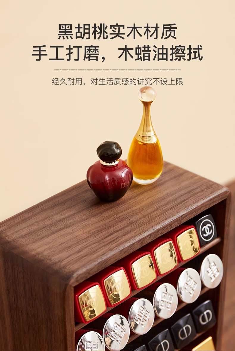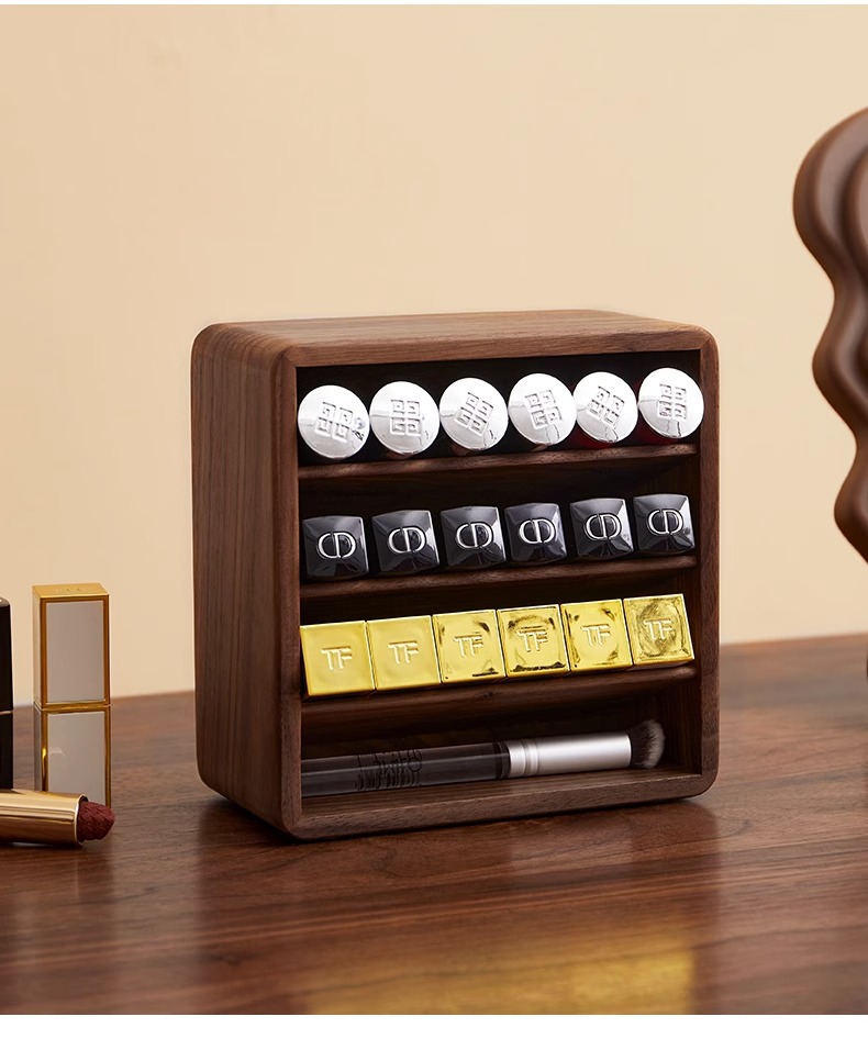 2025 新しい口紅ラック三層コレクションドレッシングテーブル収納ウォールナット無垢材口紅特別な大容量収納ラック