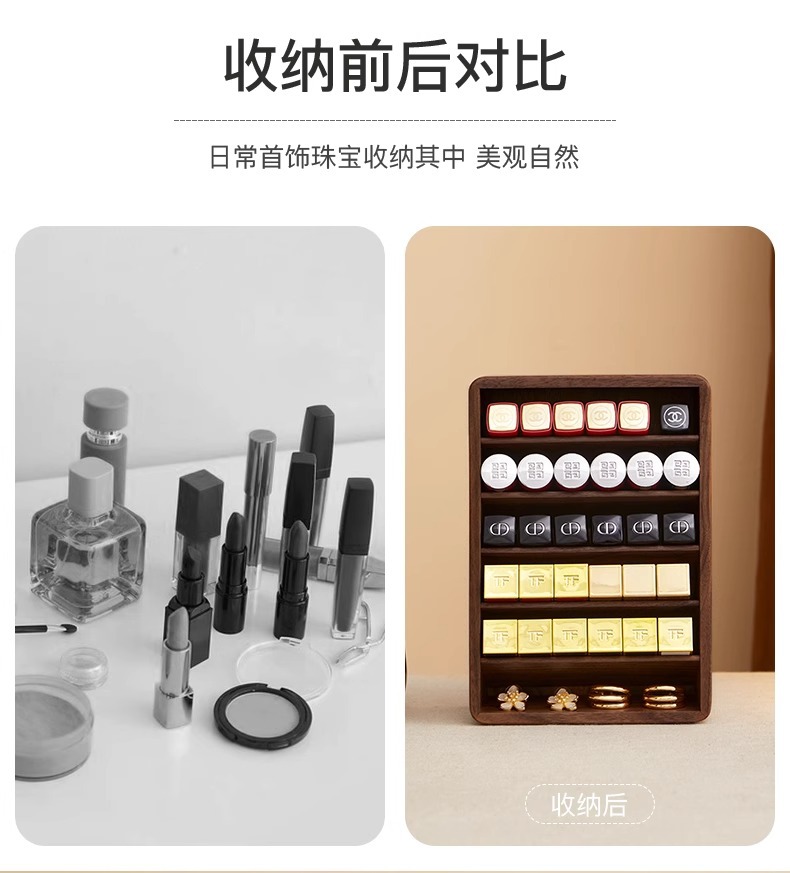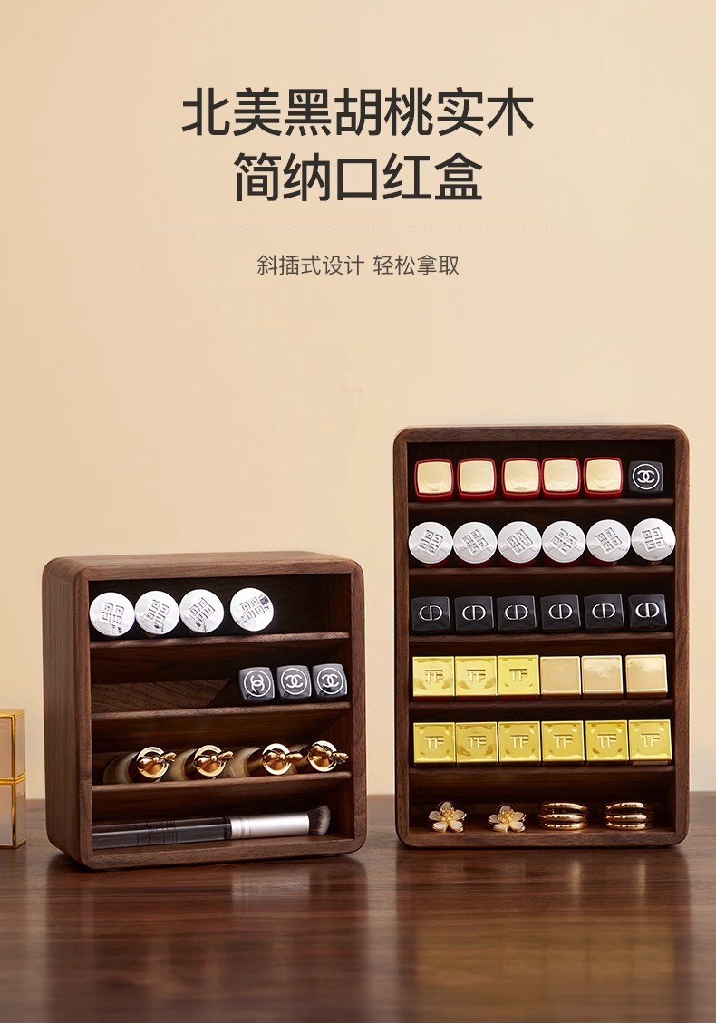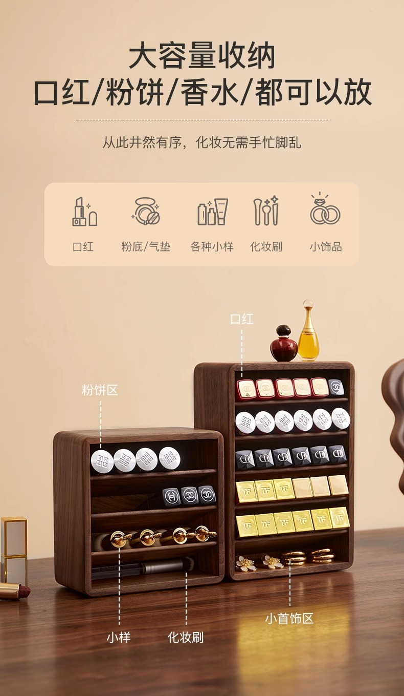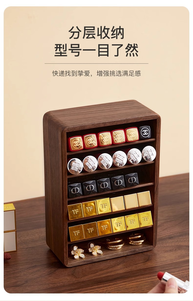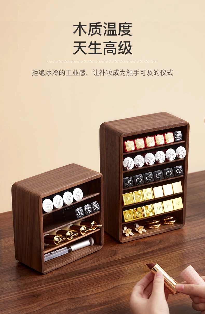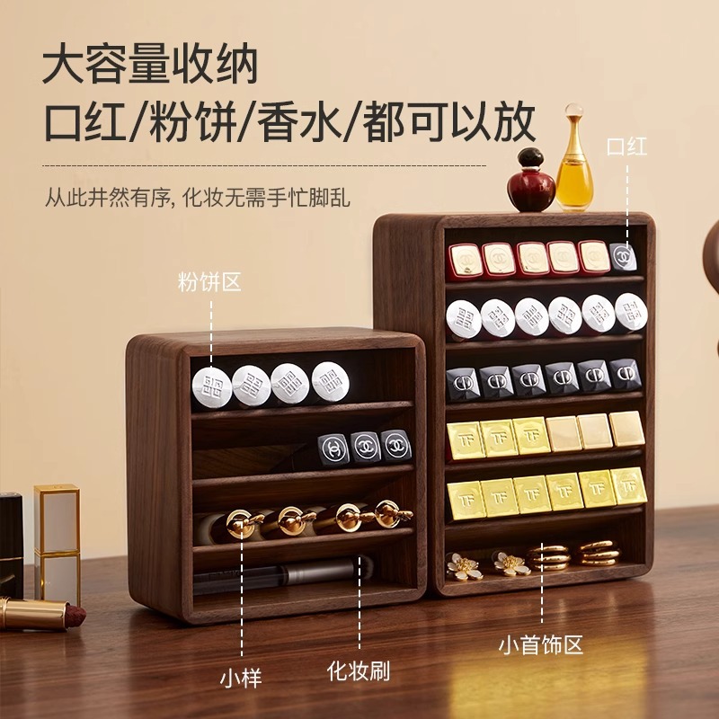 黑胡桃木高级感桌面口红唇膏唇釉眼影收纳盒实木多格大容量置物架