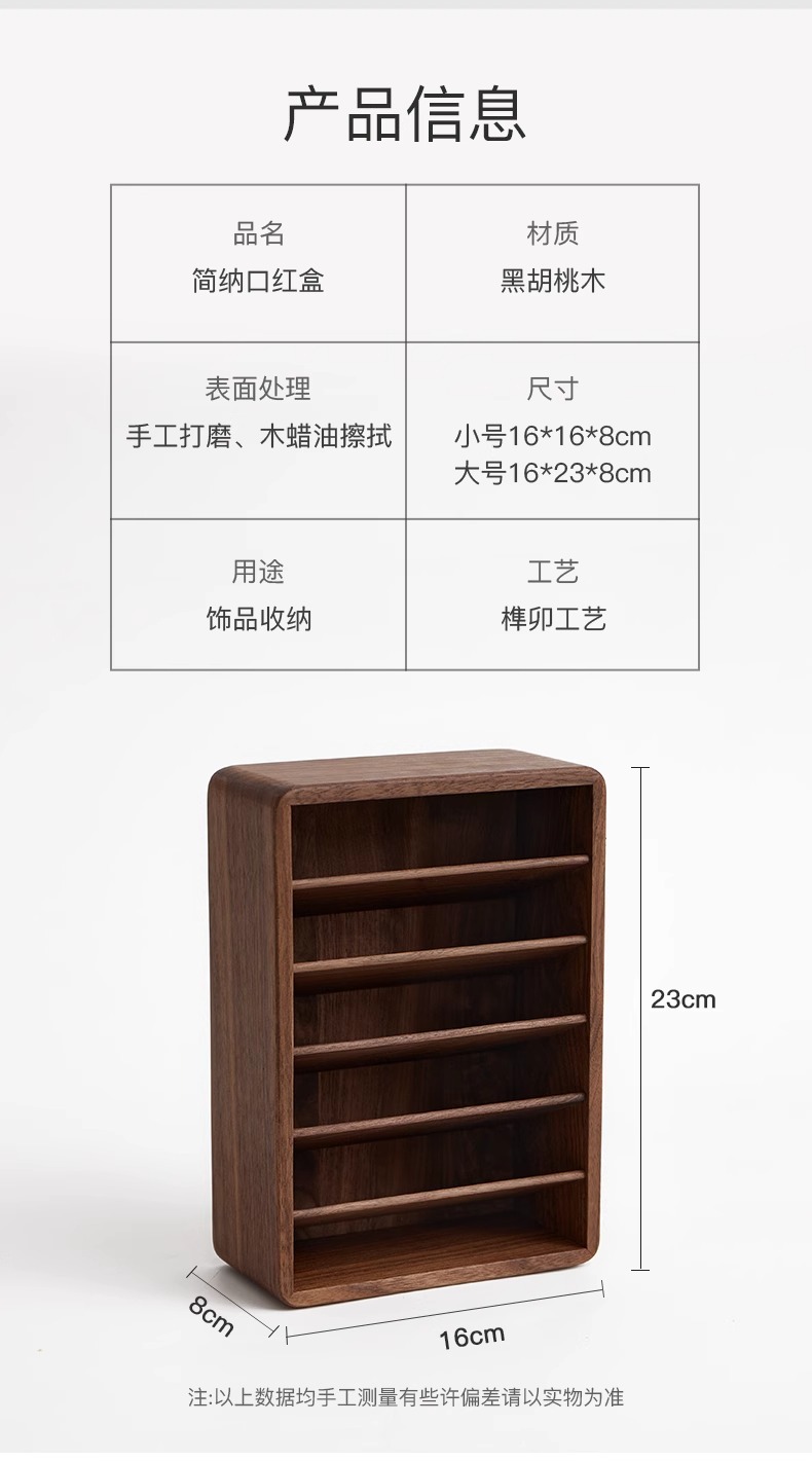 口红架子斜胡桃木质口红收纳横着放防尘多格横着放中古风口红收纳