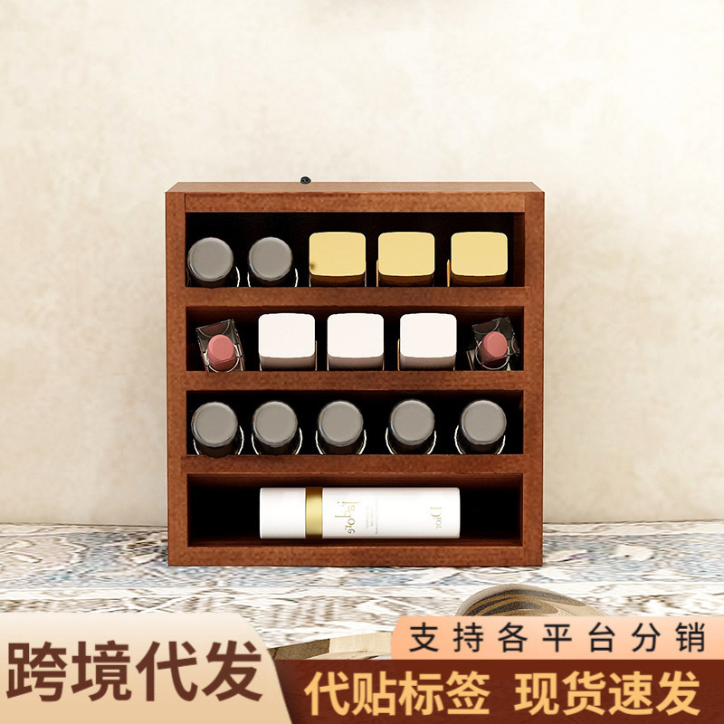 実木デスクトップ棚化粧品収納ケース化粧台口紅眉筆唇膏アイシャドーサンプル整理多層