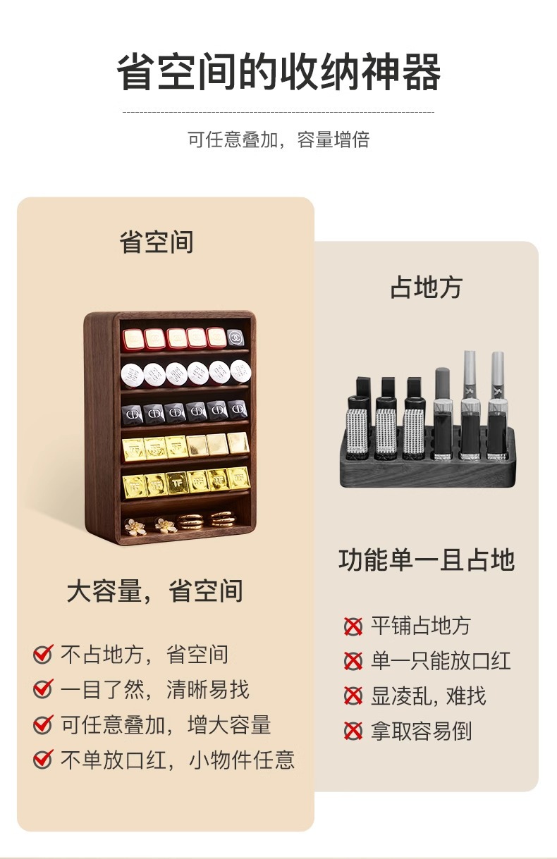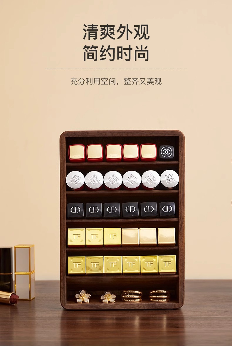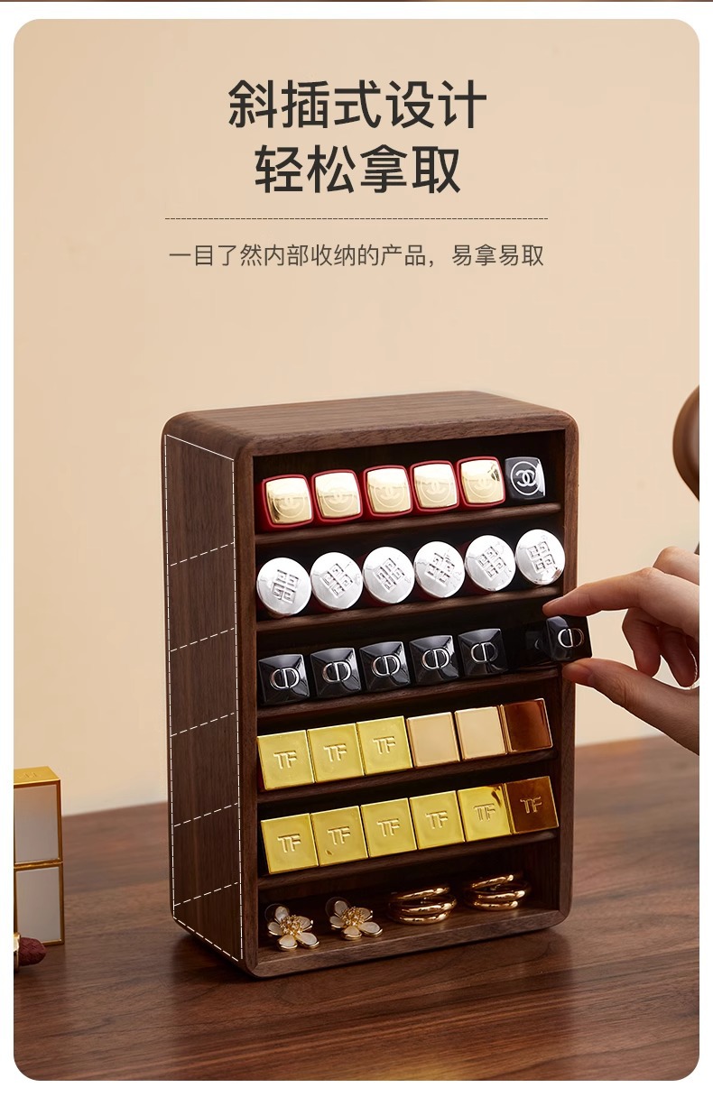 現物烏檀木口紅収納棚カウンターデスクトップ精油展示棚実木分格口紅収納棚