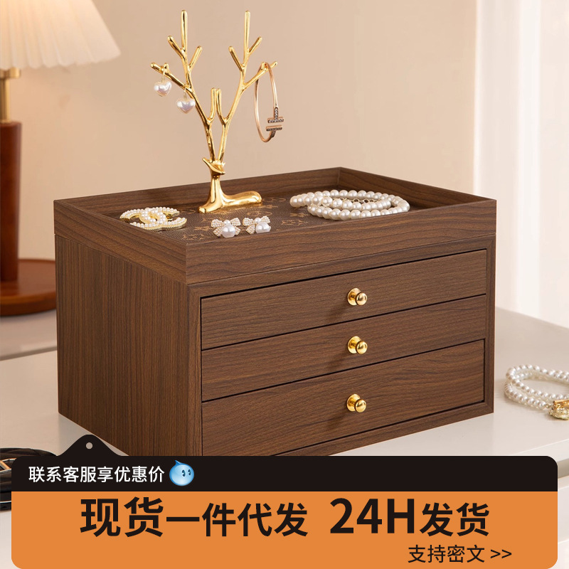 ジュエリー収納クルミ木目調ジュエリーボックスハイエンドジュエリー収納ボックス防塵大容量ジュエリーボックス