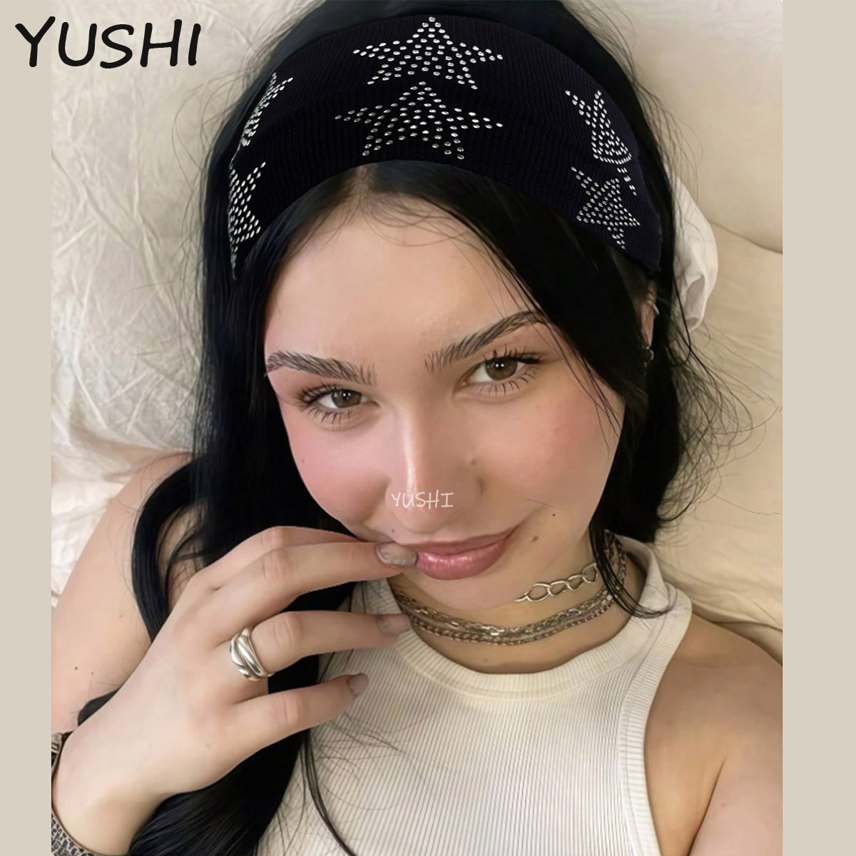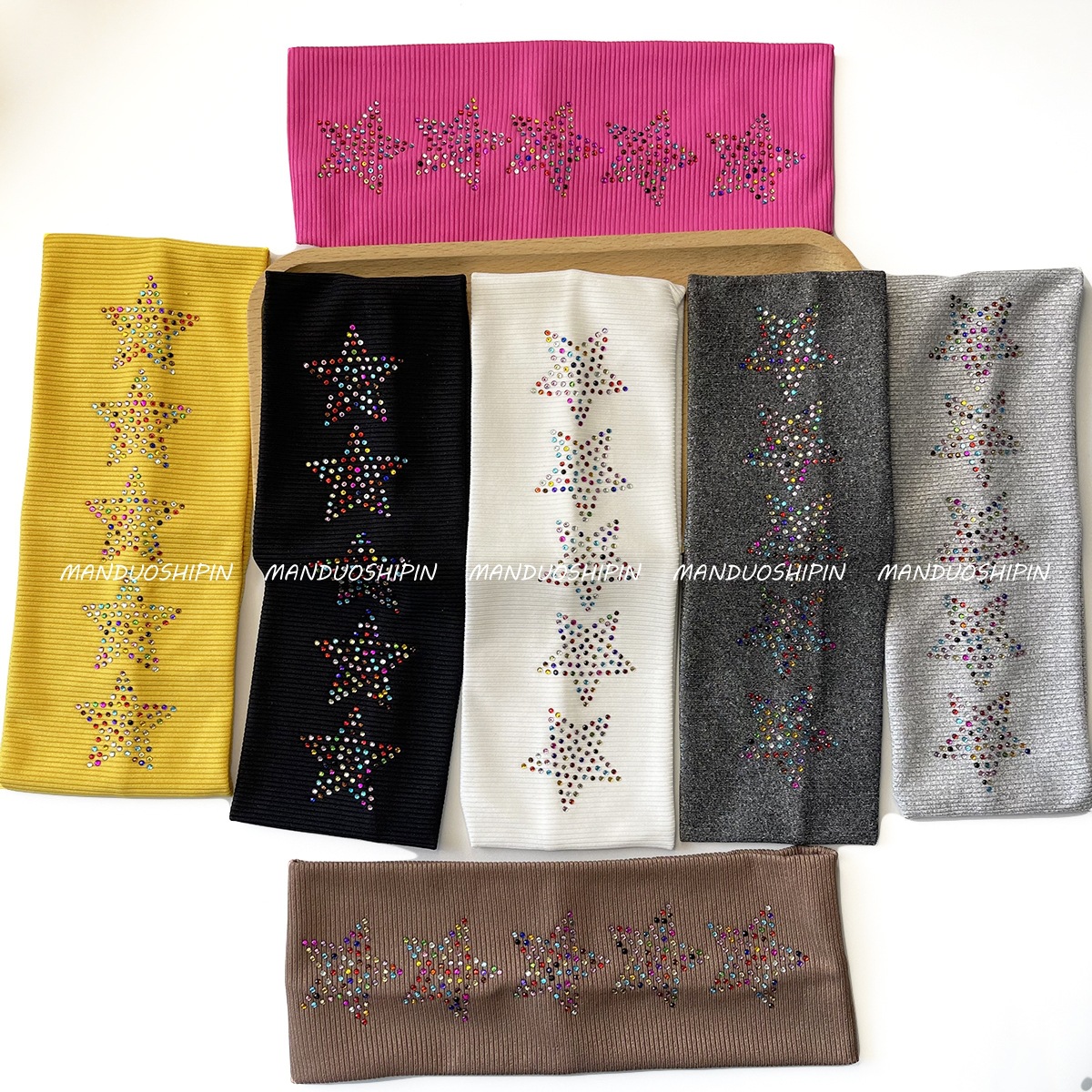 Amazon クロスボーダーレトロソリッドカラーホットダイヤモンドヘッドバンドカラフルな五芒星ファッション写真アクセサリーつば広弾性ヘッドバンド
