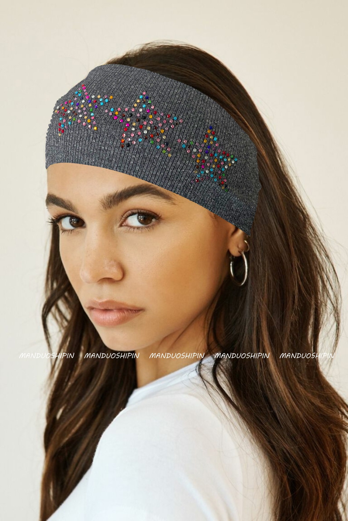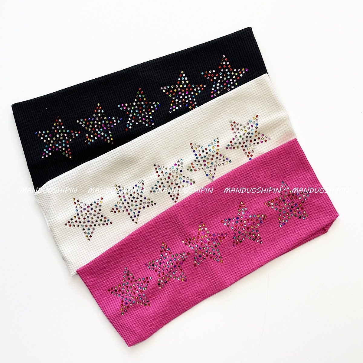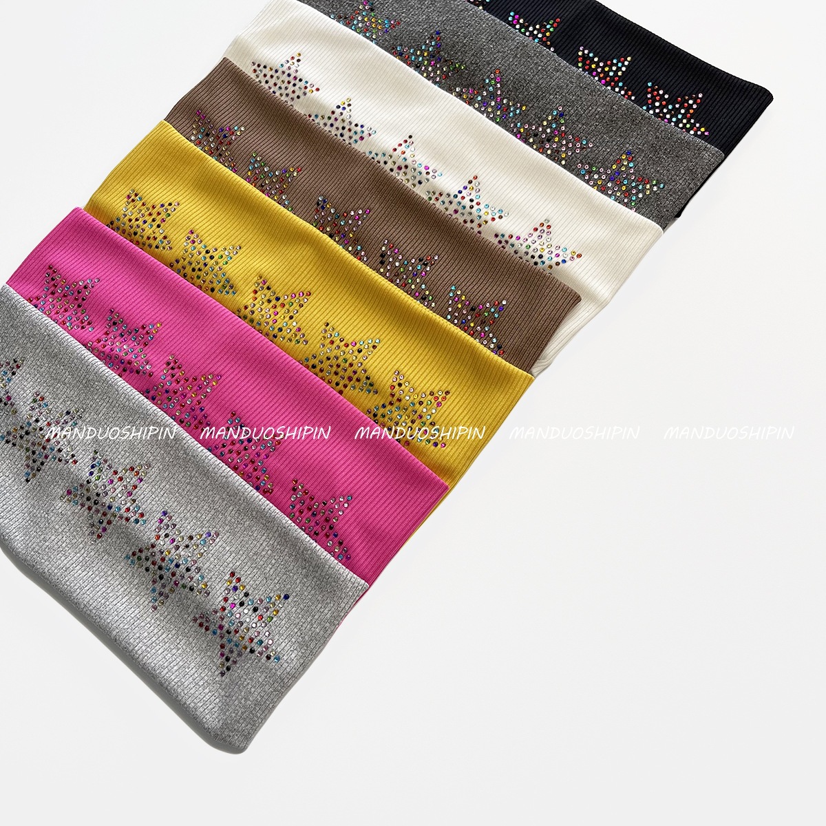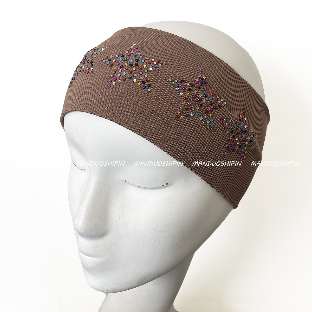 跨境亚马逊烫钻双排星星发带坑条纯色复古头饰宽边弹力运动头带女