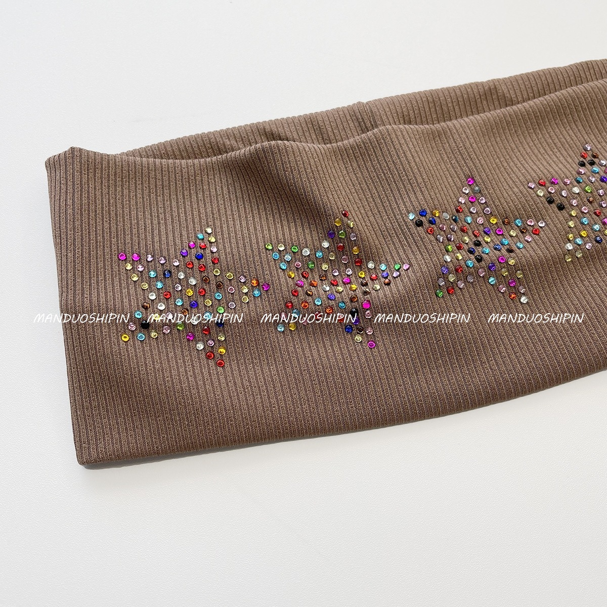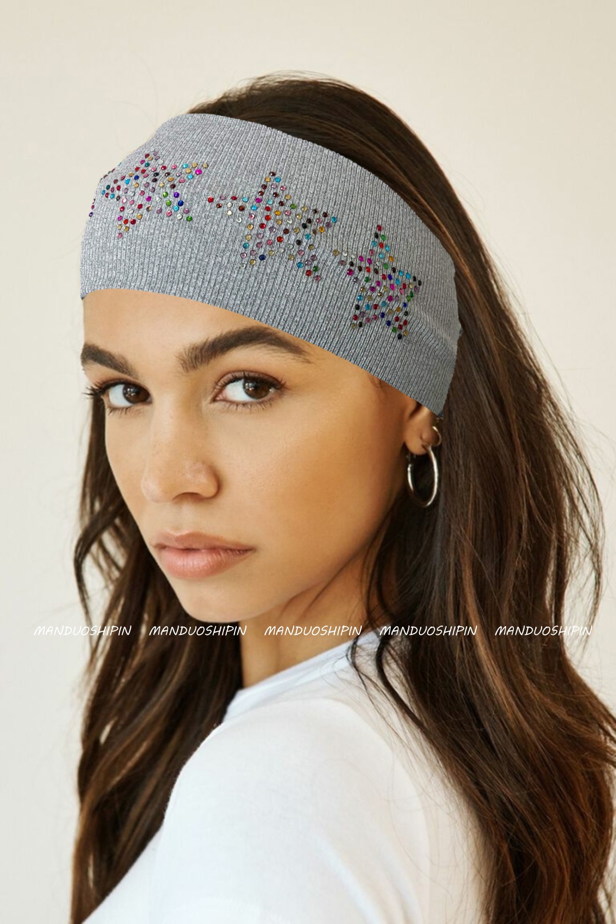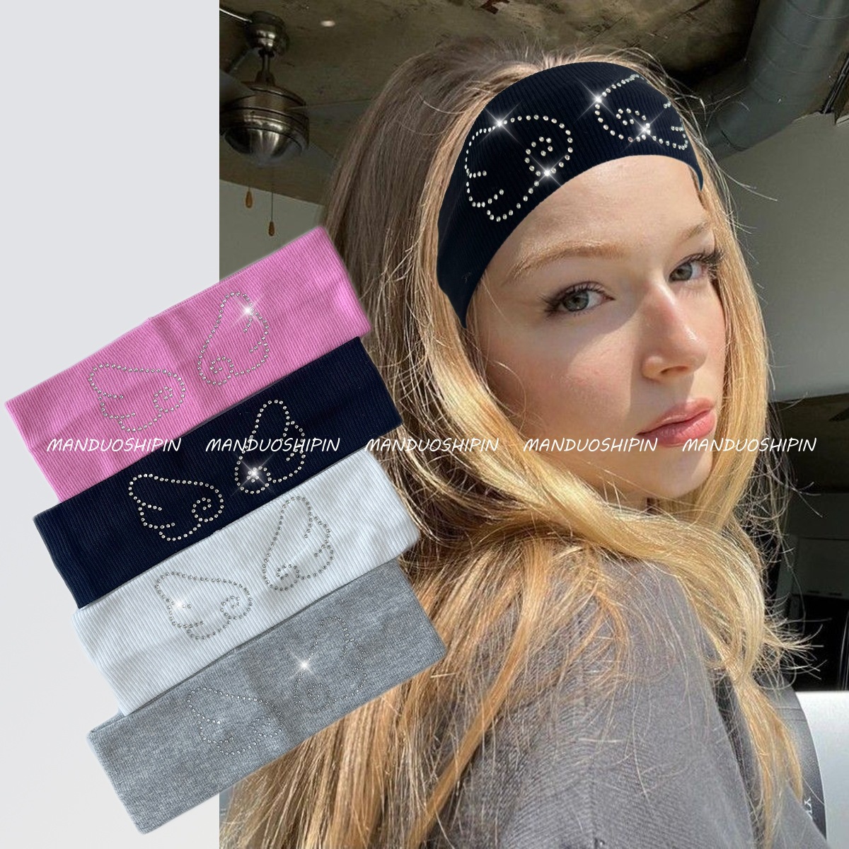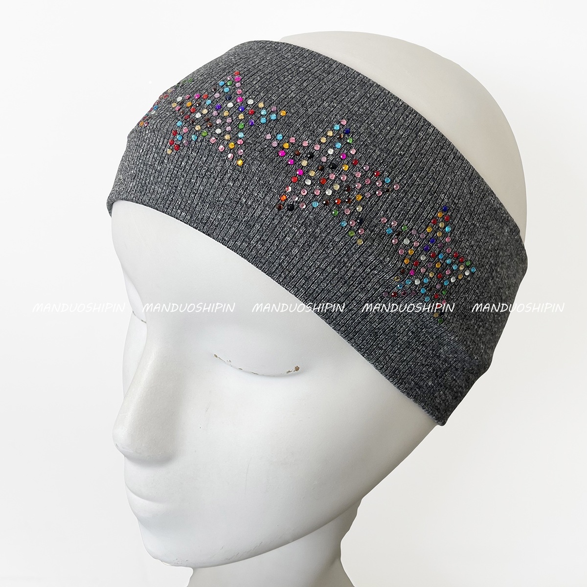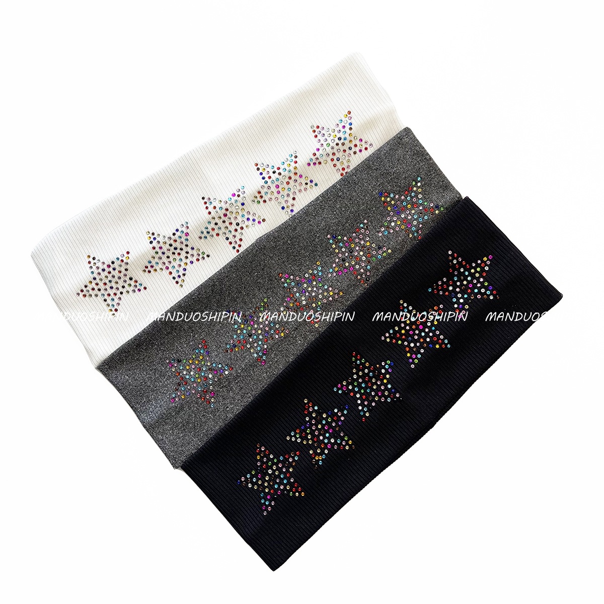 跨境亚马逊烫钻双排星星发带坑条纯色复古头饰宽边弹力运动头带女