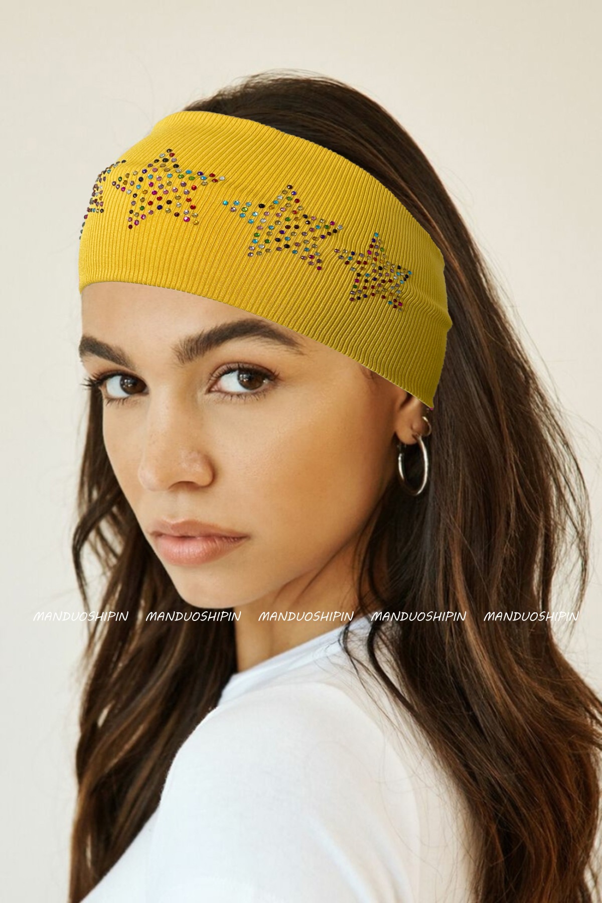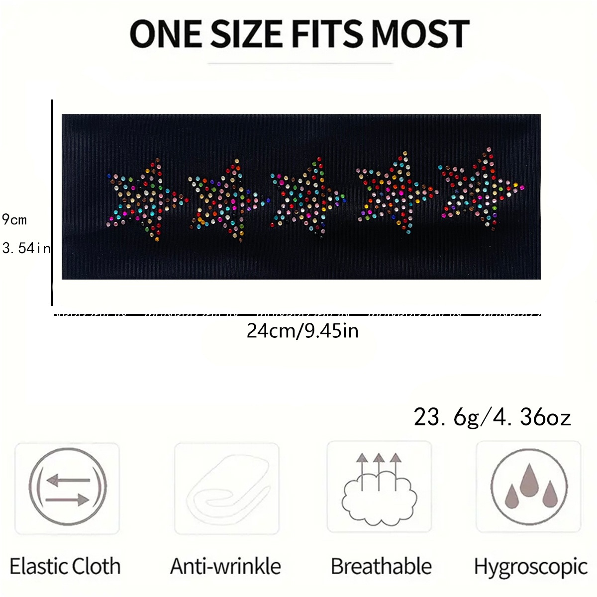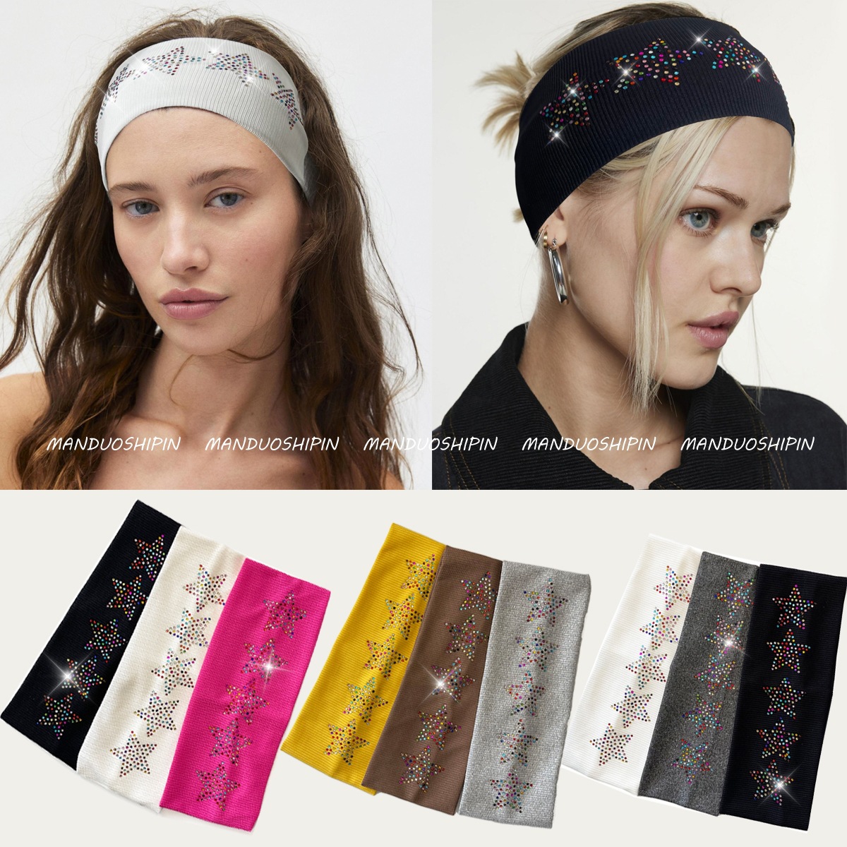 亚马逊跨境新款纯色烫钻发带五角星烫钻发饰复古时尚运动弹力头带
