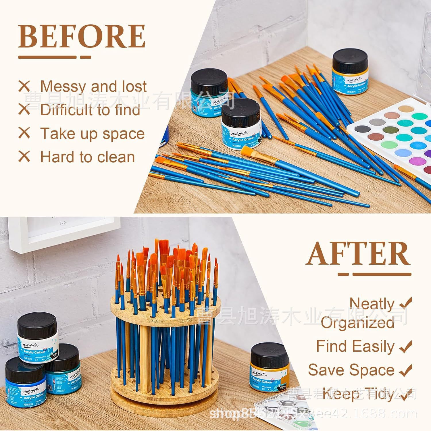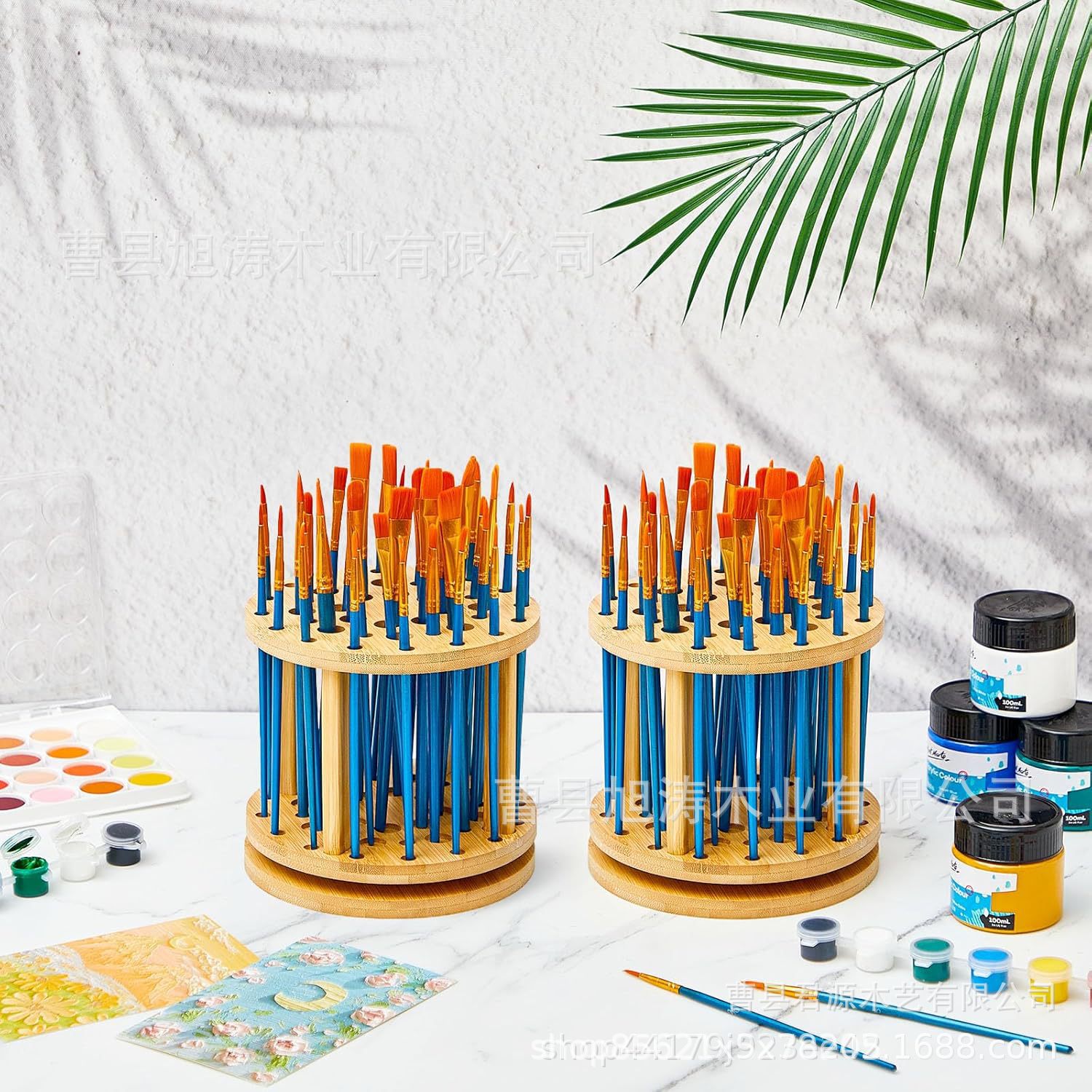 木製ペイントブラシ収納ラック手動回転ペイントブラシ配置ラックオフィスアート教室水彩ペンホルダー