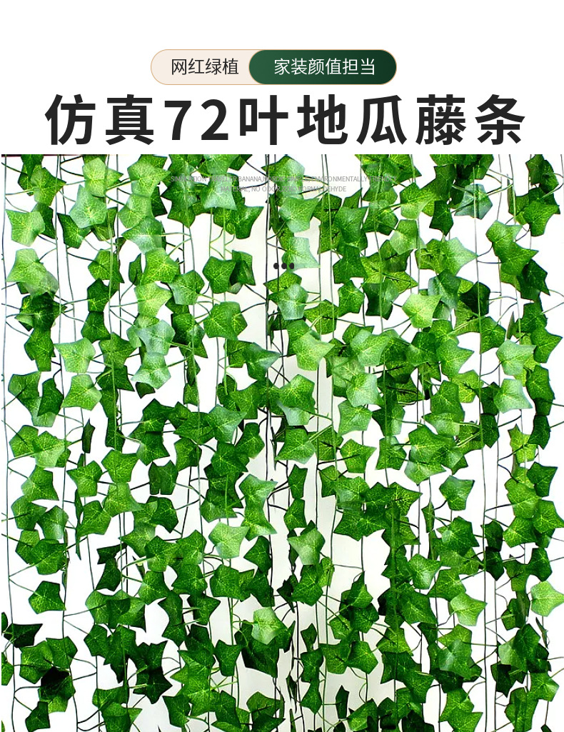 ✅ 跨境热卖210cm仿真绿萝叶藤条72片叶装饰藤蔓酒店管道吊顶造景