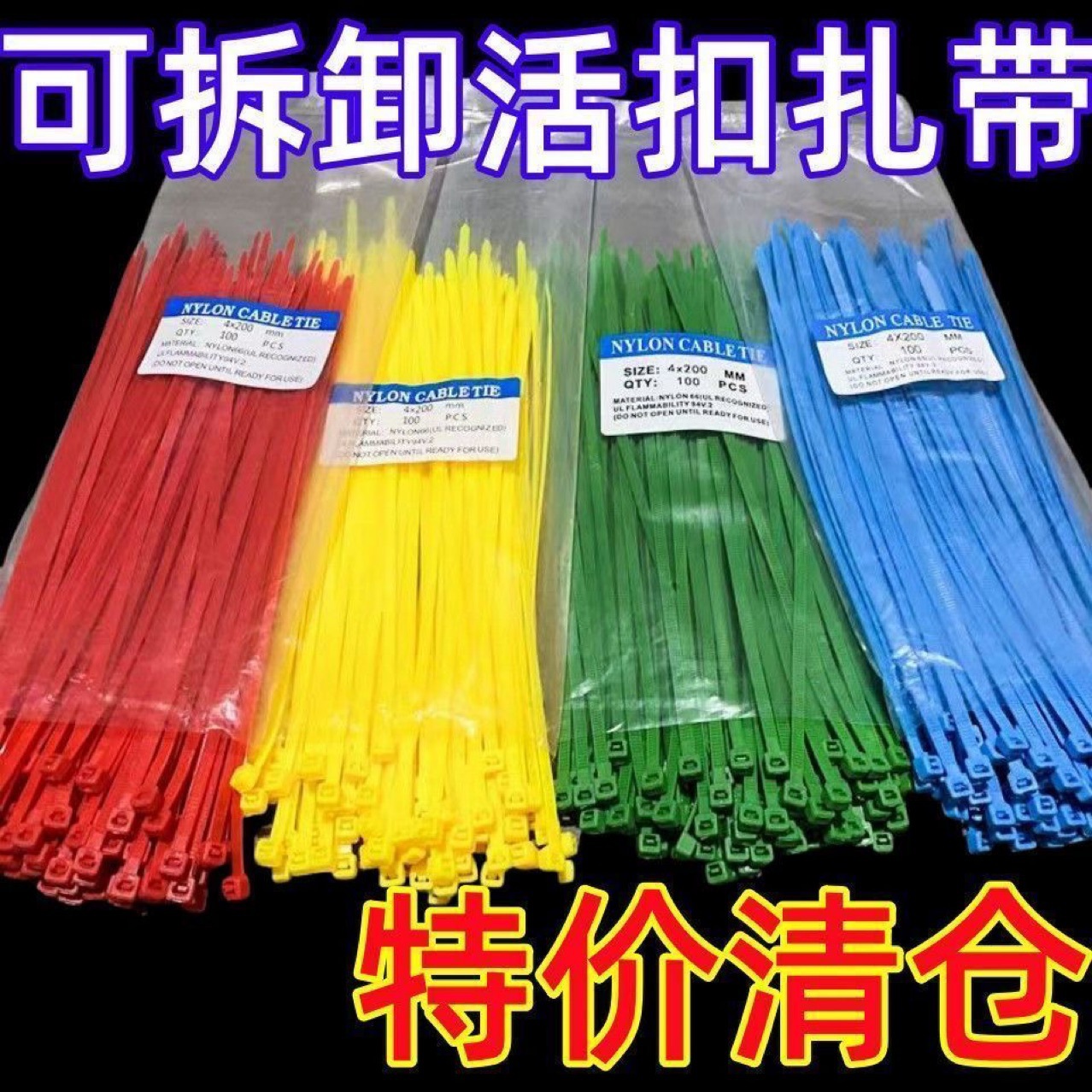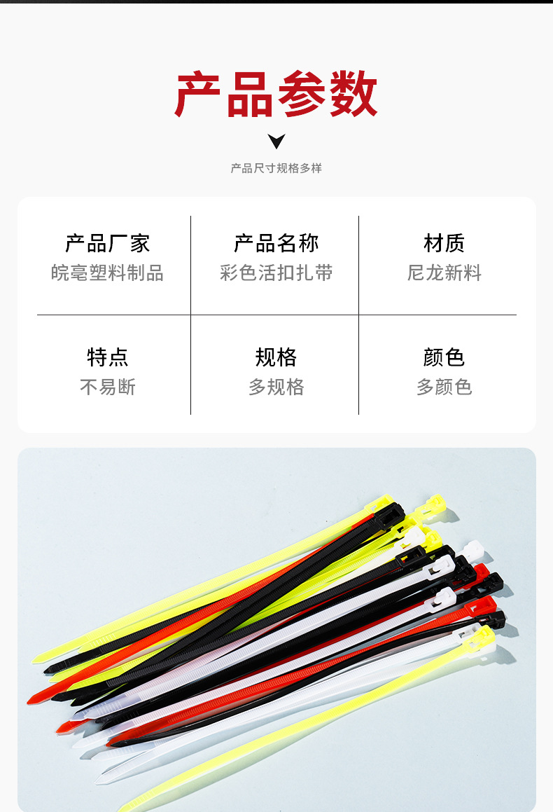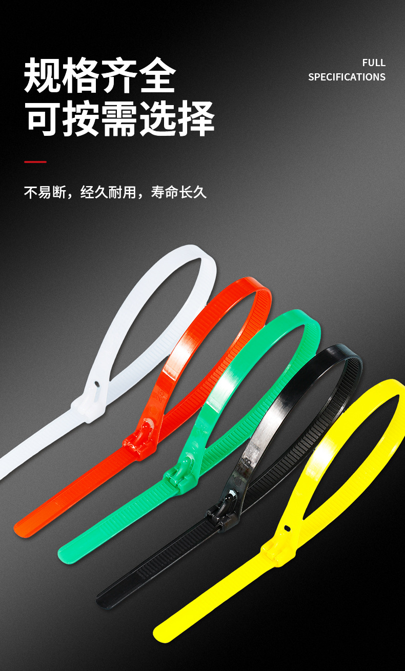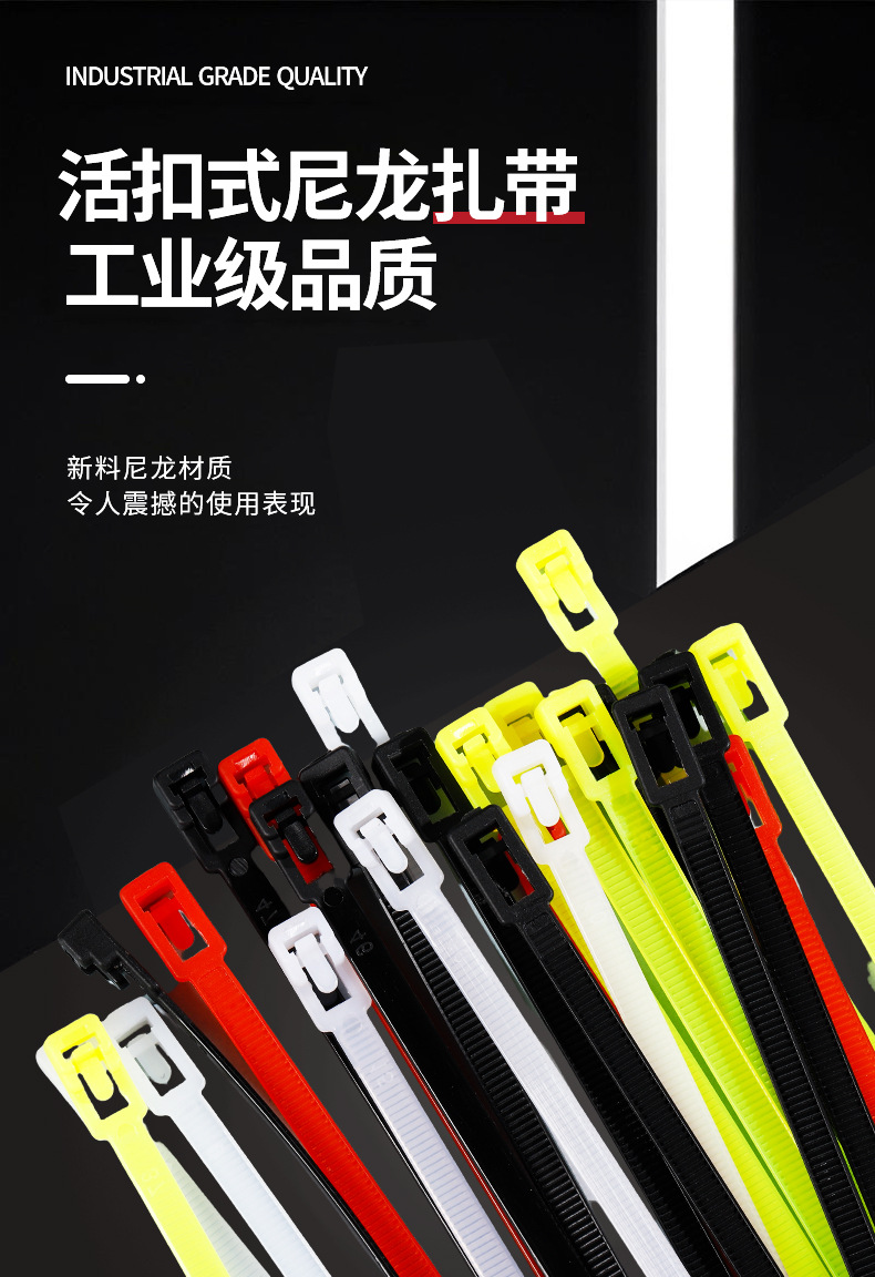 活扣扎带尼龙可拆卸重复使用彩色尼龙捆扎带可松式扎带塑料扎条