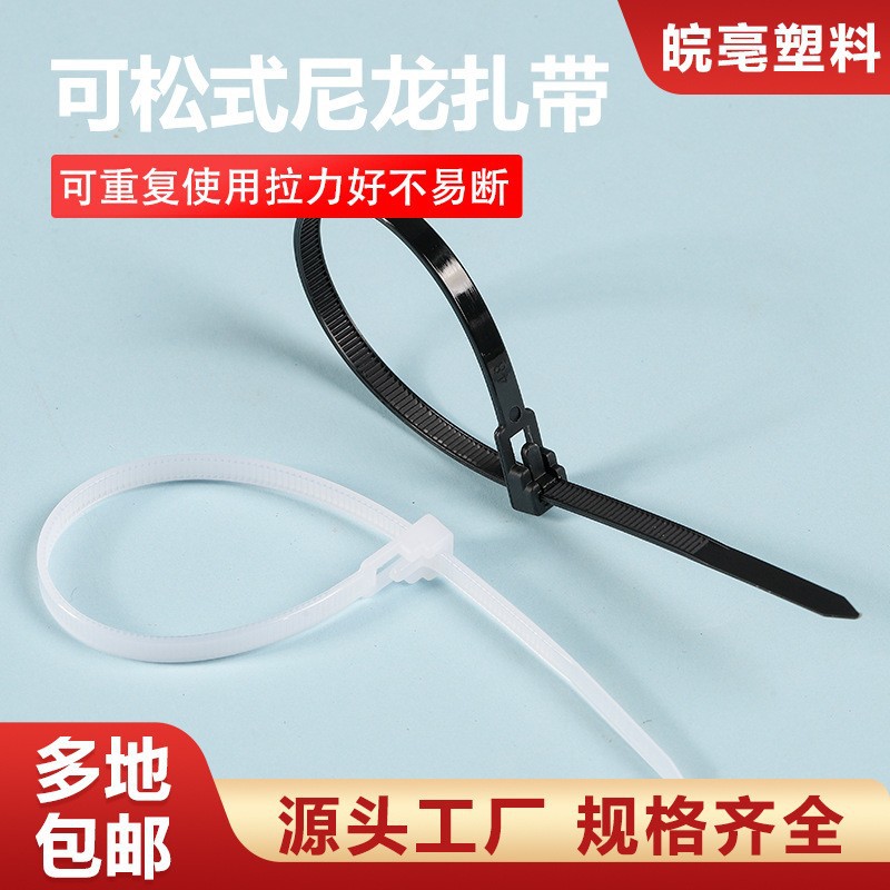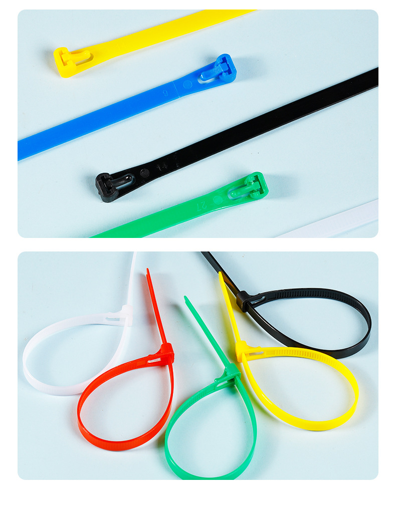 取り外し可能なナイロンケーブルタイ、再利用可能なケーブルタイ、黒と白のカラープラスチックバックルメーカー卸売