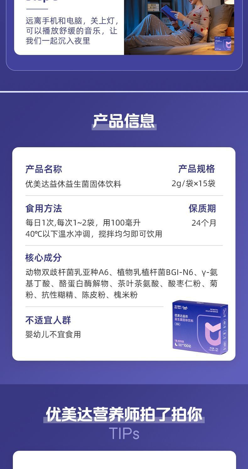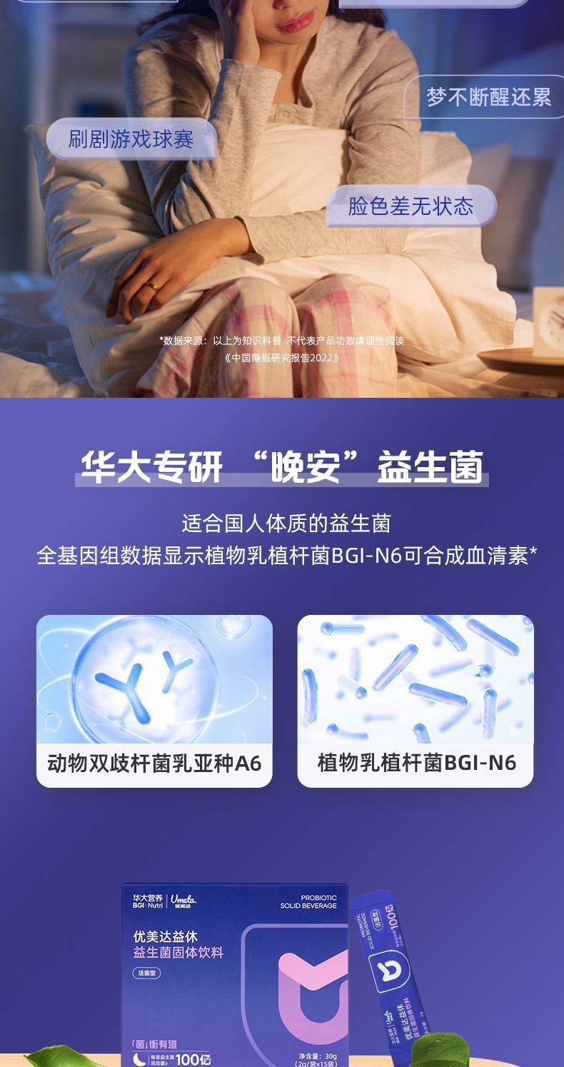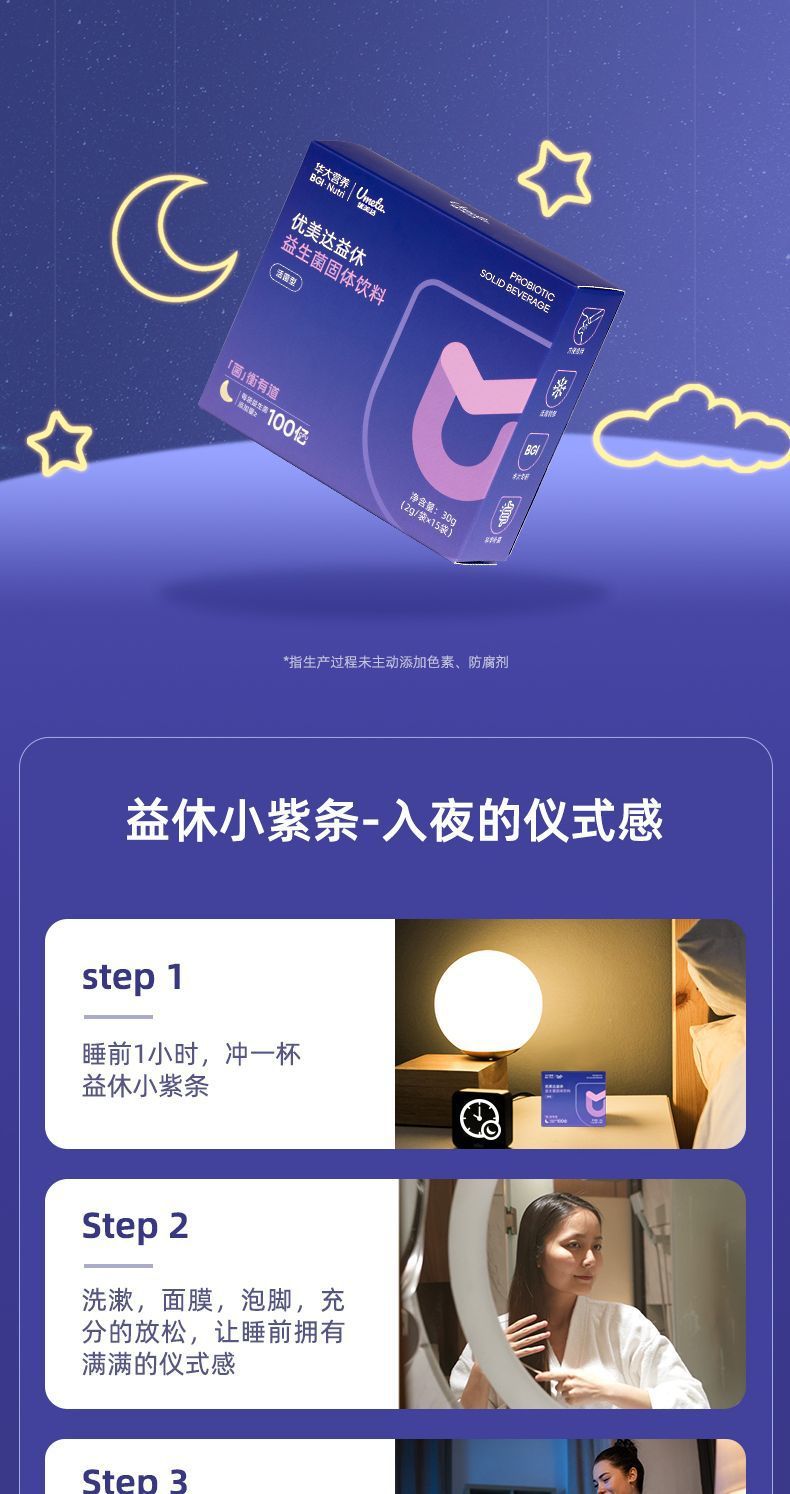 BGI Youmeda Yixiu プロバイオティクス固形ドリンク生菌睡眠プロバイオティクス 15 袋/箱