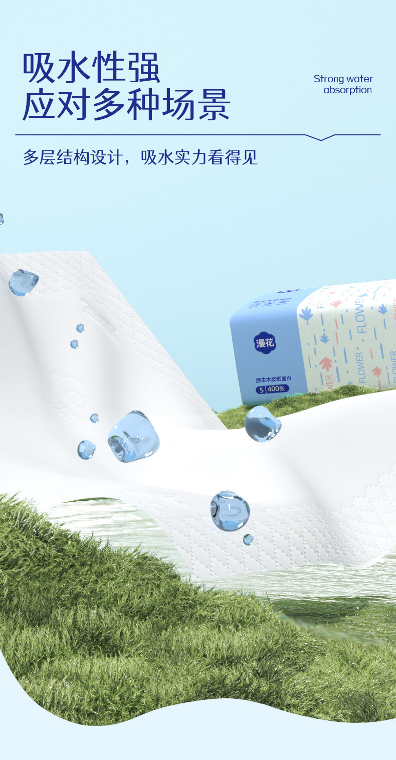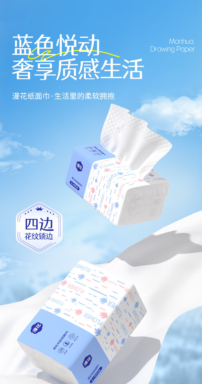 漫花吸紙中国風シリーズ家庭用ペーパータオル全箱ナプキン大包トイレットペーパー原木厚手ティッシュ紙