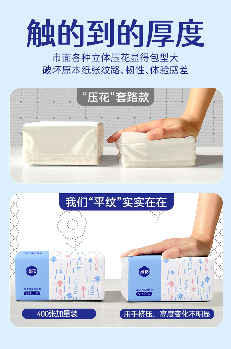 漫花抜き紙400枚の厚手ナプキンsコード家庭用ティッシュは原木ティッシュを入れてトイレットペーパーを使う