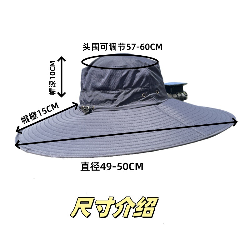 ファッショナブルなソーラーハット、長持ちするファン、充電式、強風、夏用の大きなつばの日焼け止め帽子、男性用サンシェード、速乾性のフィッシャーマンハット
