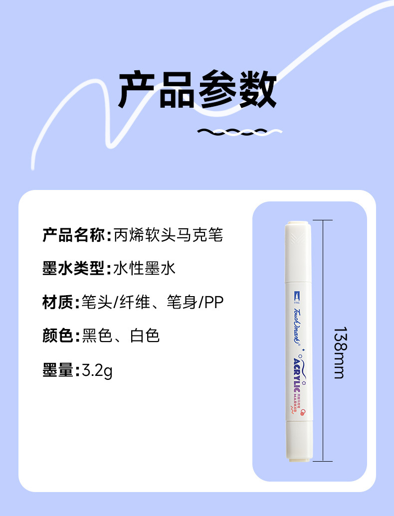 アクリルソフトヘッドマークペン白色シングルヘッド学生美術絵画Touch markソフトヘッドアクリルマークペン