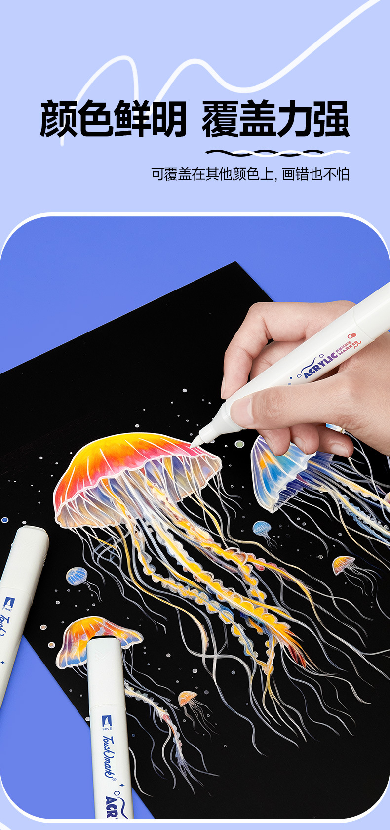 ソフトヘッド直液式アクリルマークペン小学生美術専用不浸透色折り畳み可能な絵筆子供用マーカーペン