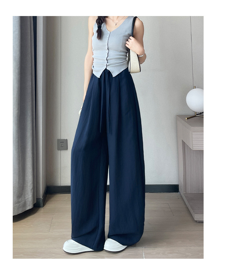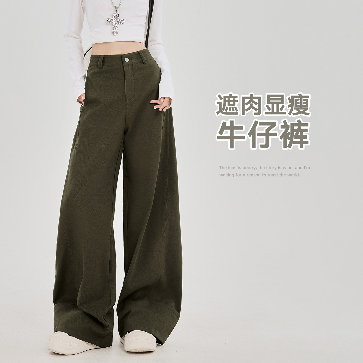レイジースタイルパンツデザインカーキカジュアルパンツレディース夏ハイウエストスリムルーズワイドレッグパンツフロアレングスパンツ