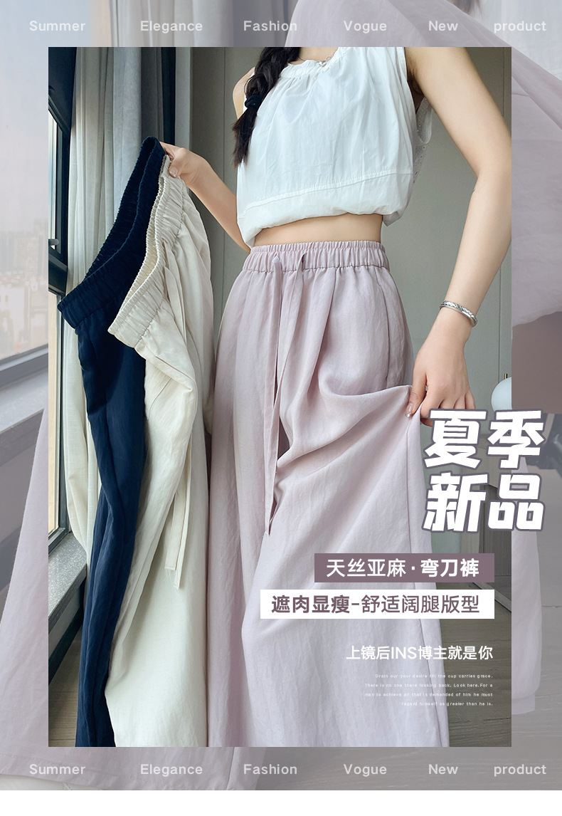 ウォッシュドテンセルリヨセルリネンワイドレッグパンツ女性の夏薄いシミターパンツ怠惰なルーズカジュアルコットンとリネンの女性のパンツ