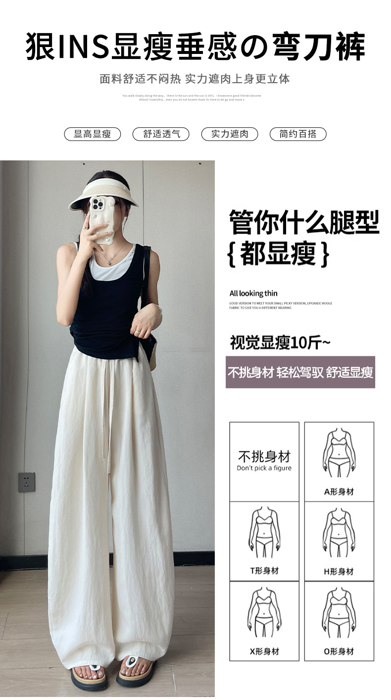 白いアメリカのスポーツズボンの衛のズボンの2024秋の新型のバナナの広い足は縄の束の足を引き出して腰が高くて痩せています。
