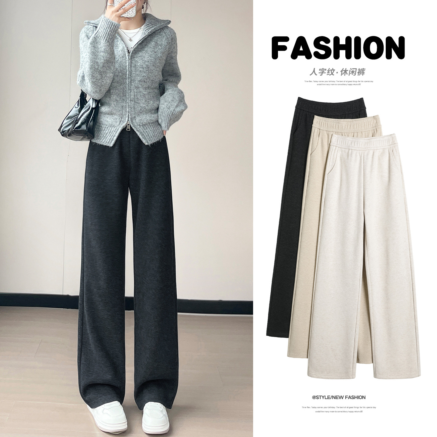 2025秋冬深灰色高腰垂感小个子毛呢休闲裤人字纹窄版阔腿裤女秋冬