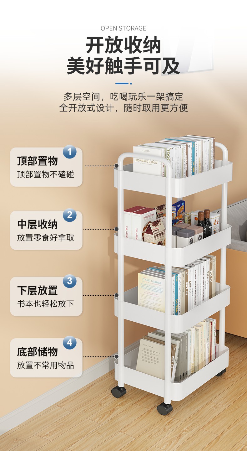 本棚トロリー収納ラック床置き可動家庭用シンプルな多層スナック収納読書本棚車輪付き