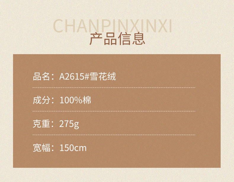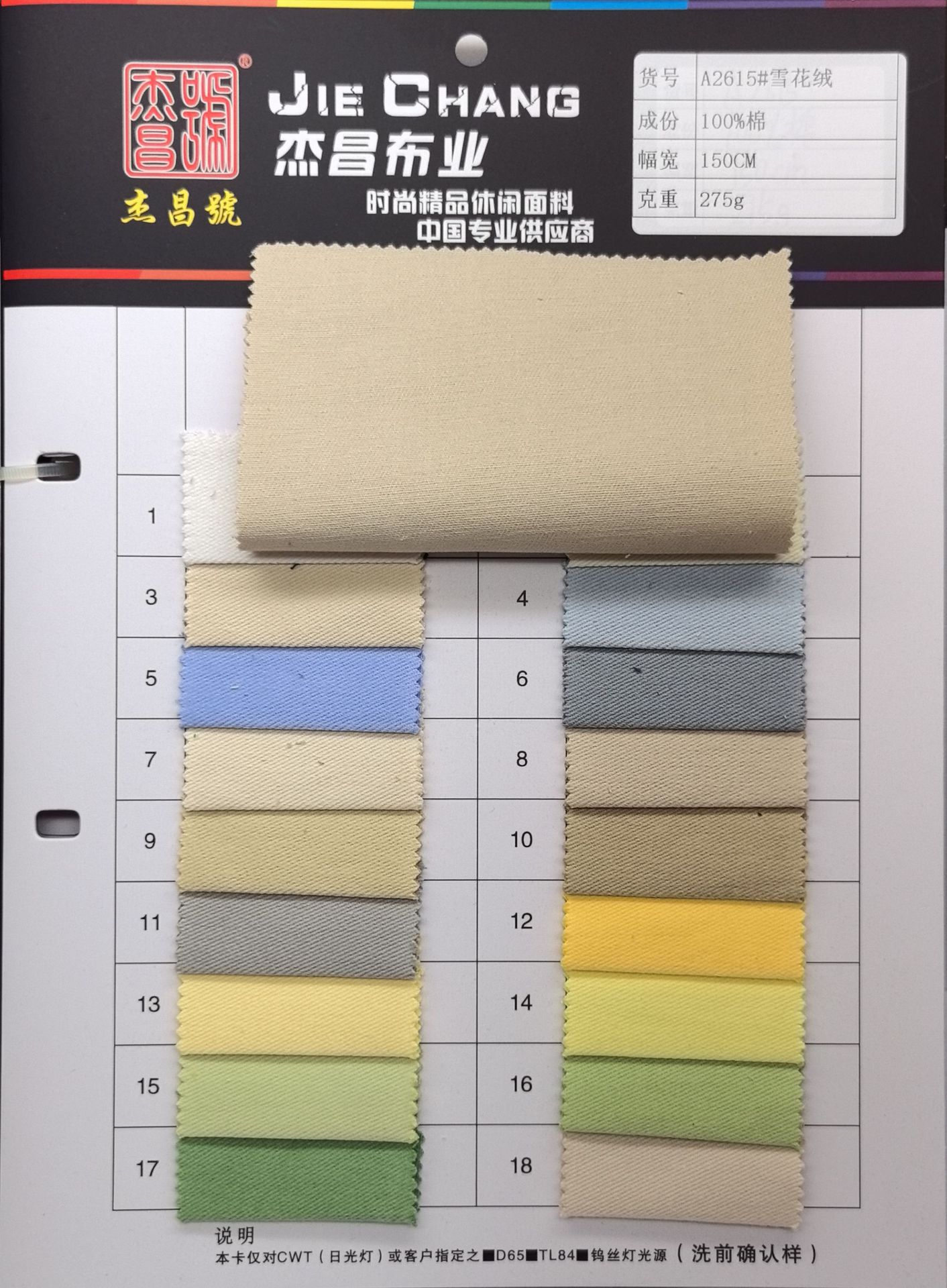 规格型号 A2615#275克雪花绒布料 柔软厚实保暖耐磨不易起球全棉斜纹床上用品面料,其他颜色看详细页色卡图(下单备注或旺旺留言),实体色卡链接,一份色卡一元,顺丰到付,拍下联系客服改价格