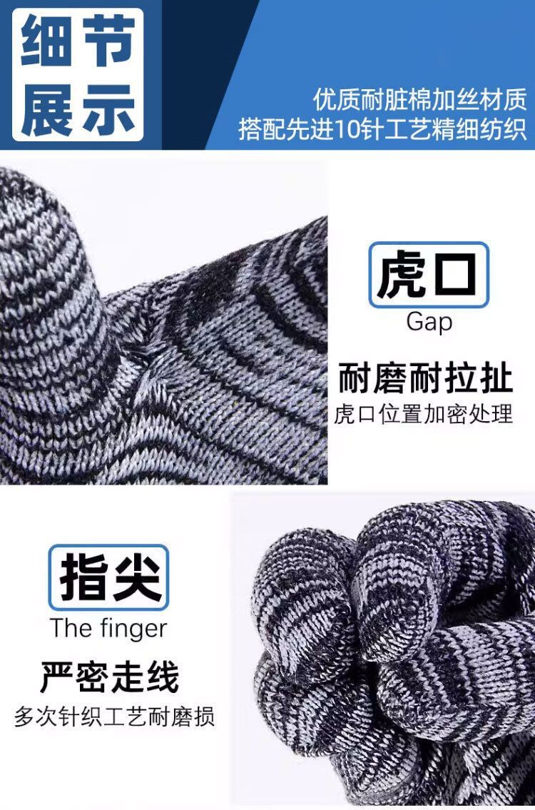 劳保手套耐磨加厚防护手套尼龙工地手套干活劳动防滑棉纱手套批发