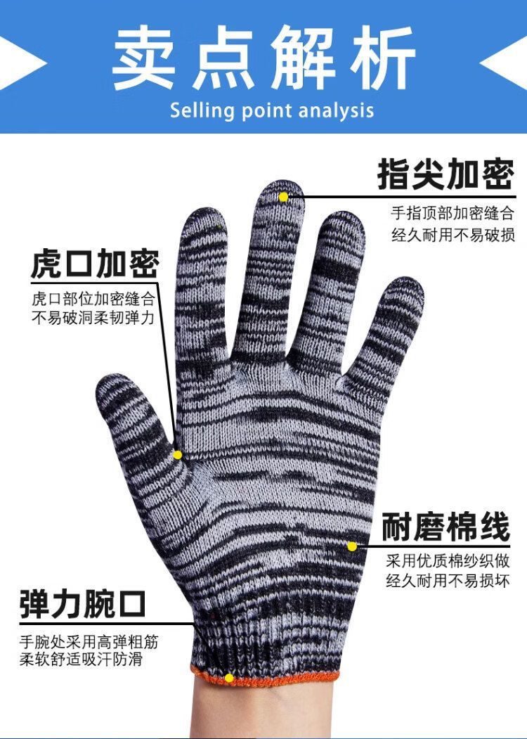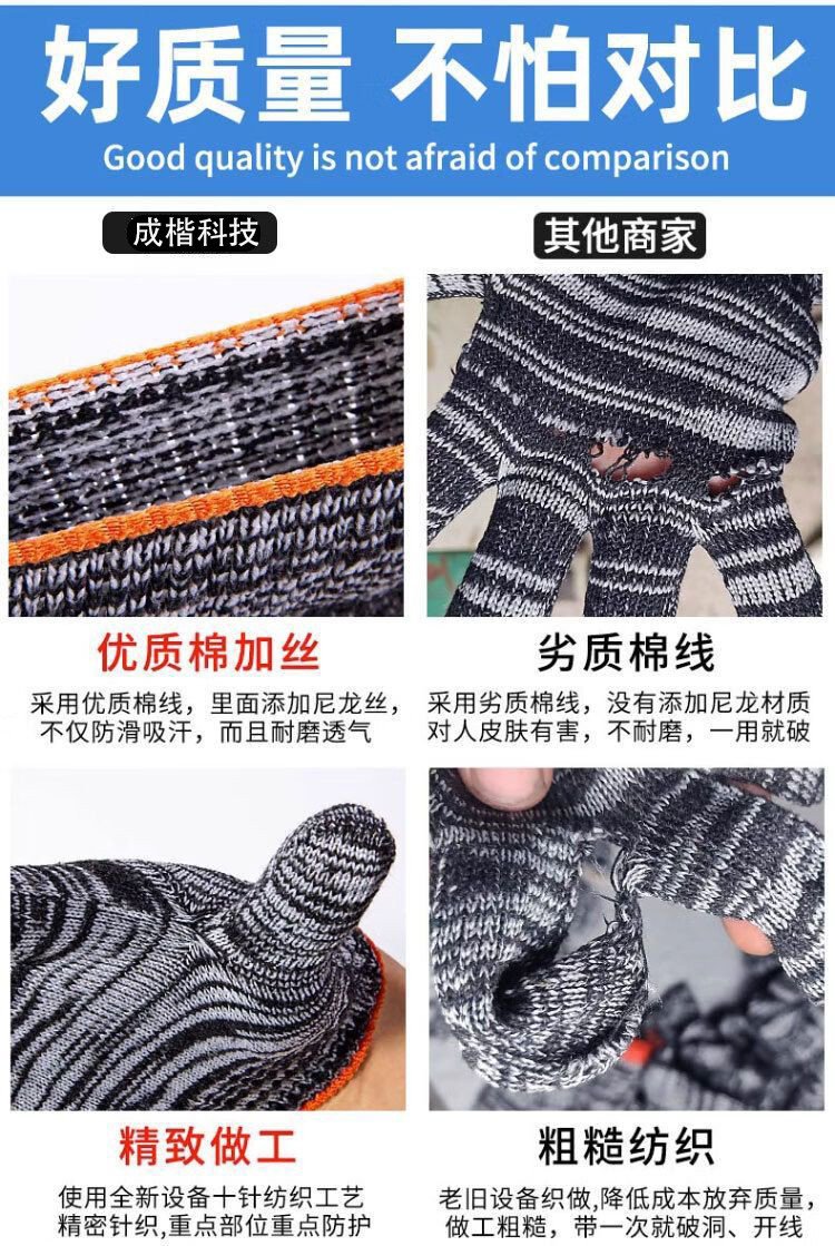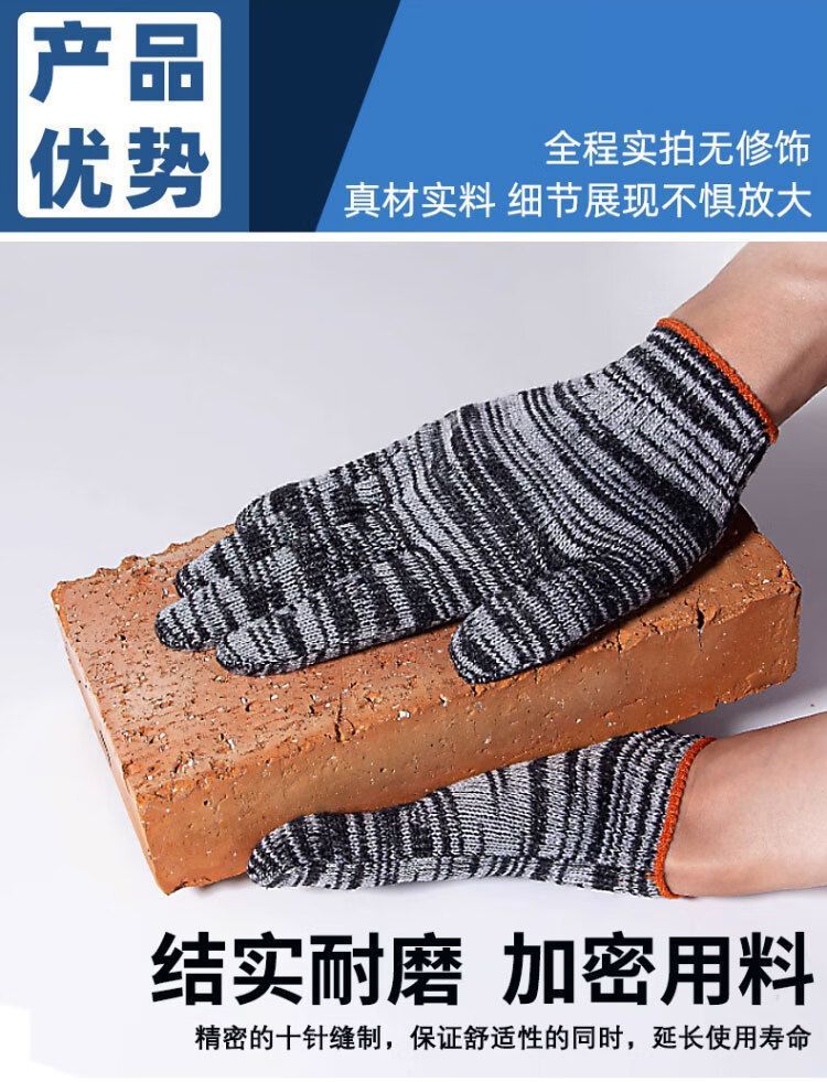 労働保護手袋卸売り包郵便紅花汚れ耐摩耗性ニット工業修理車純綿厚手手袋綿糸