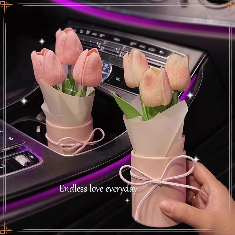車の装飾品チューリップブーケ車のセンターコンソール装飾品インターネット有名人のカー用品車の模擬花チューリップ
