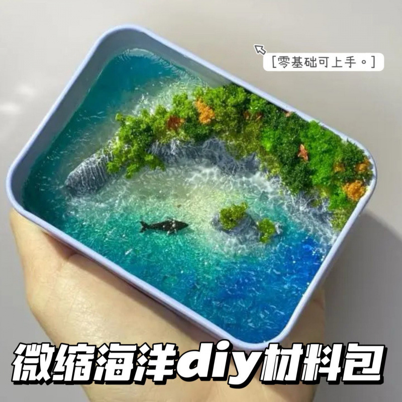 DIY 半島鉄箱ミニチュア海景手作りモデル海景セット材料パッケージマイクロ造園装飾品
