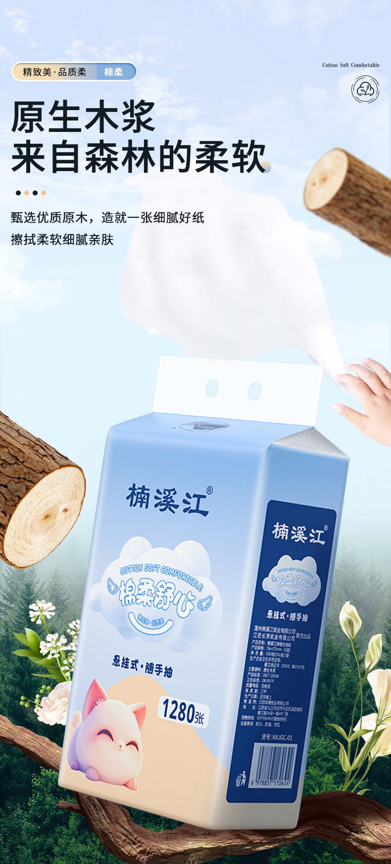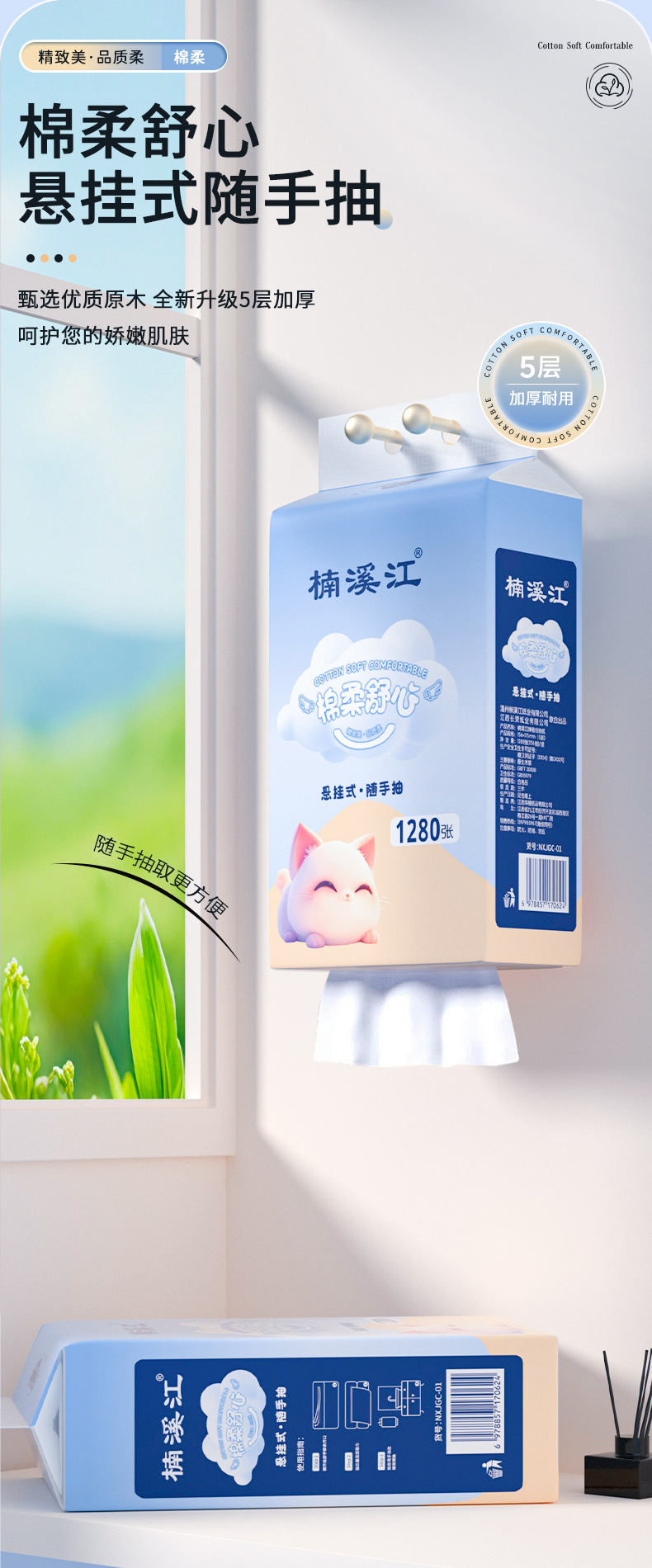 链接有两款包装选择,值户跟楠溪江,楠溪江品质更佳 更推荐购买植护悬挂式抽纸