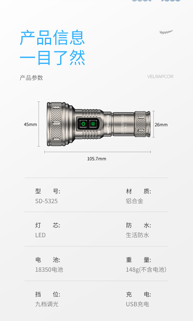 SD-5325 固定焦点懐中電灯ショートスタイル [LED 電子ディスプレイ、18350 リチウム電池 900 mAh 付き],SD-5326 固定焦点懐中電灯 - ショートスタイル [LED 電子ディスプレイ、26350 リチウム電池 2000 mAh 1 個付き],SD-5326 固定焦点懐中電灯 - ショートスタイル [デジタル電子ディスプレイ、26350 リチウム電池 2000 mAh 1 個搭載],SD-5328 固定焦点懐中電灯ロングスタイル [LED 電子ディスプレイ、21700 バッテリー 5000 mAh 1 個付き],SD-5328 固定焦点懐中電灯ロングスタイル [デジタル電子ディスプレイ; 21700 バッテリー 5000 mAh 1 個搭載]