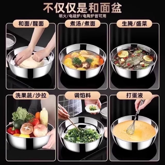 不锈钢和面盆特厚家用厨房洗菜盆加厚汤锅火锅盆洗菜盆水煮鱼盆