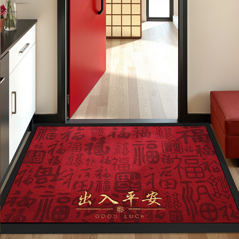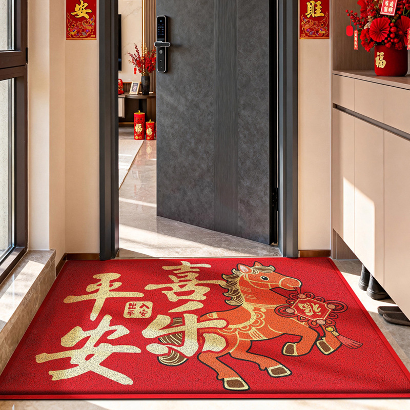 大江新中式马年入户门地垫新年家用红色丝圈除尘耐脏防滑玄关脚垫