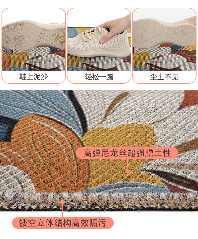 軽量高級プリント玄関フロアマット、家庭用カーペット、玄関ドア汚れ防止マット、弾性シルク滑り止めマット
