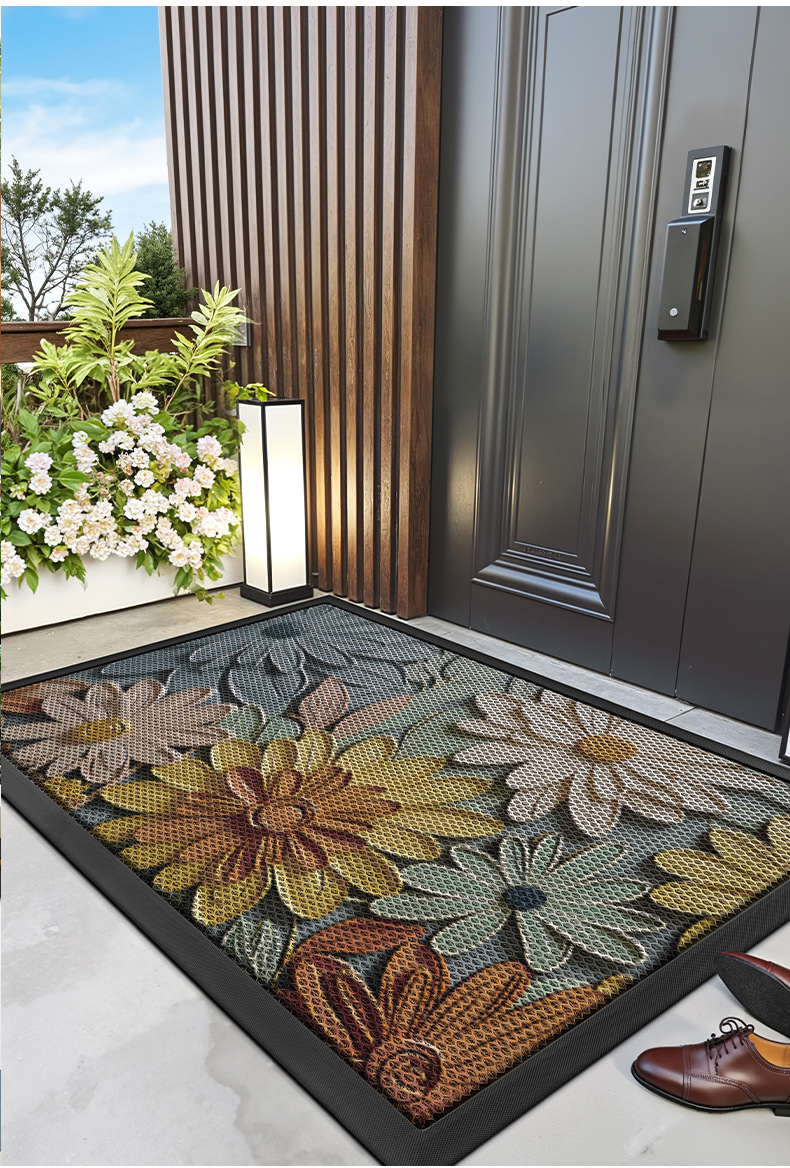 大江国境を越えたシンプルな PVC シルクサークル玄関ドアフロアマット汚れにくい家の玄関滑り止めマットカーペットフットマット